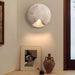 Lexora Travertine Wall Lamp is a sculptural light fixture crafted from yellow travertine, blending raw texture with geometric precision. Its circular form features a folded cutout that directs light downward, creating a subtle glow. Designed for ambient lighting, it suits modern, minimalist, or rustic interiors. Ideal for hallways, living spaces, or bedrooms, it enhances walls with natural stone aesthetics. This fixture merges functional lighting with architectural artistry.