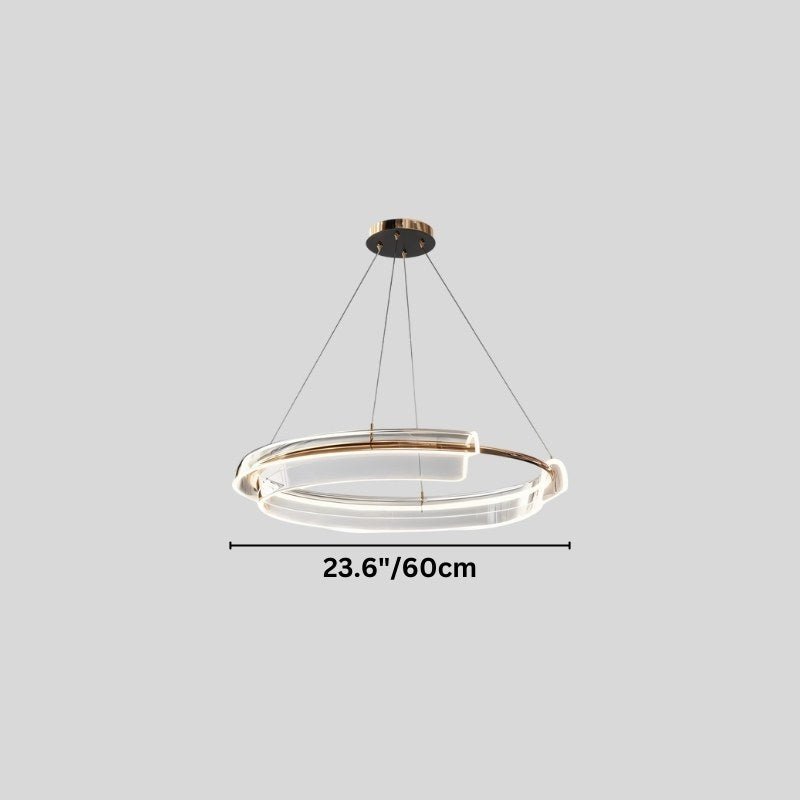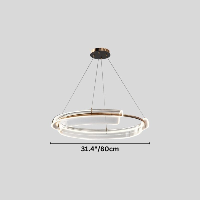 The Lisvyn Chandelier is a sculptural light fixture crafted from iron and acrylic, featuring an asymmetric dual-ring design with integrated LED illumination. Suspended by fine cables, it creates a floating effect, ideal for modern interiors. Its sleek structure suits living rooms, dining areas, and entryways, enhancing contemporary spaces. Available in two sizes, it offers versatility in placement while maintaining a bold visual impact.
