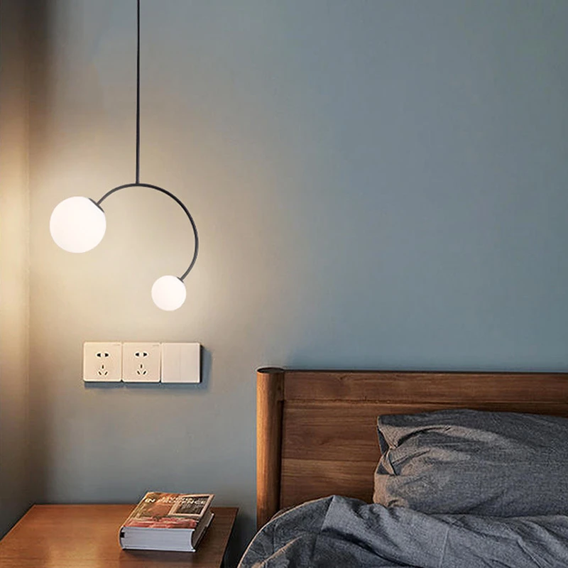 The Valentina Pendant Light is constructed with a rich black metallic tube and opal glass globes.