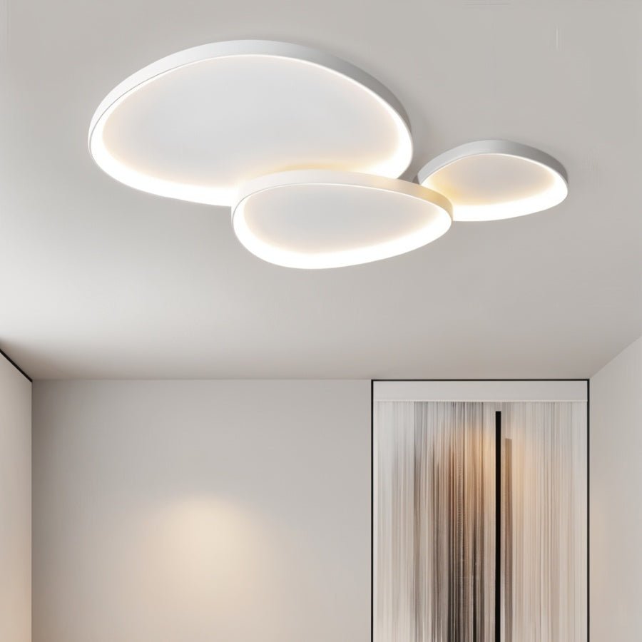 The overlapping circular panels add a distinctive artistic touch to the ceiling.