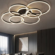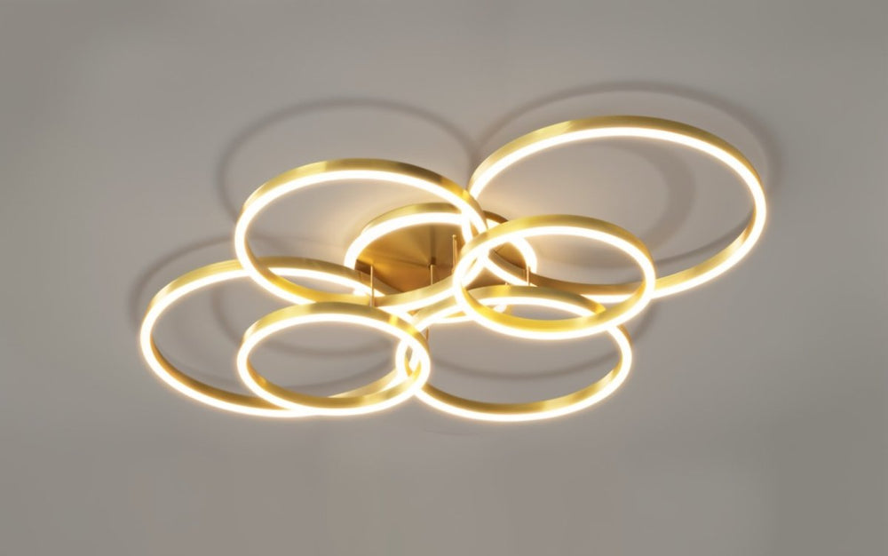 The arrangement of interconnected rings creates a striking and modern aesthetic.