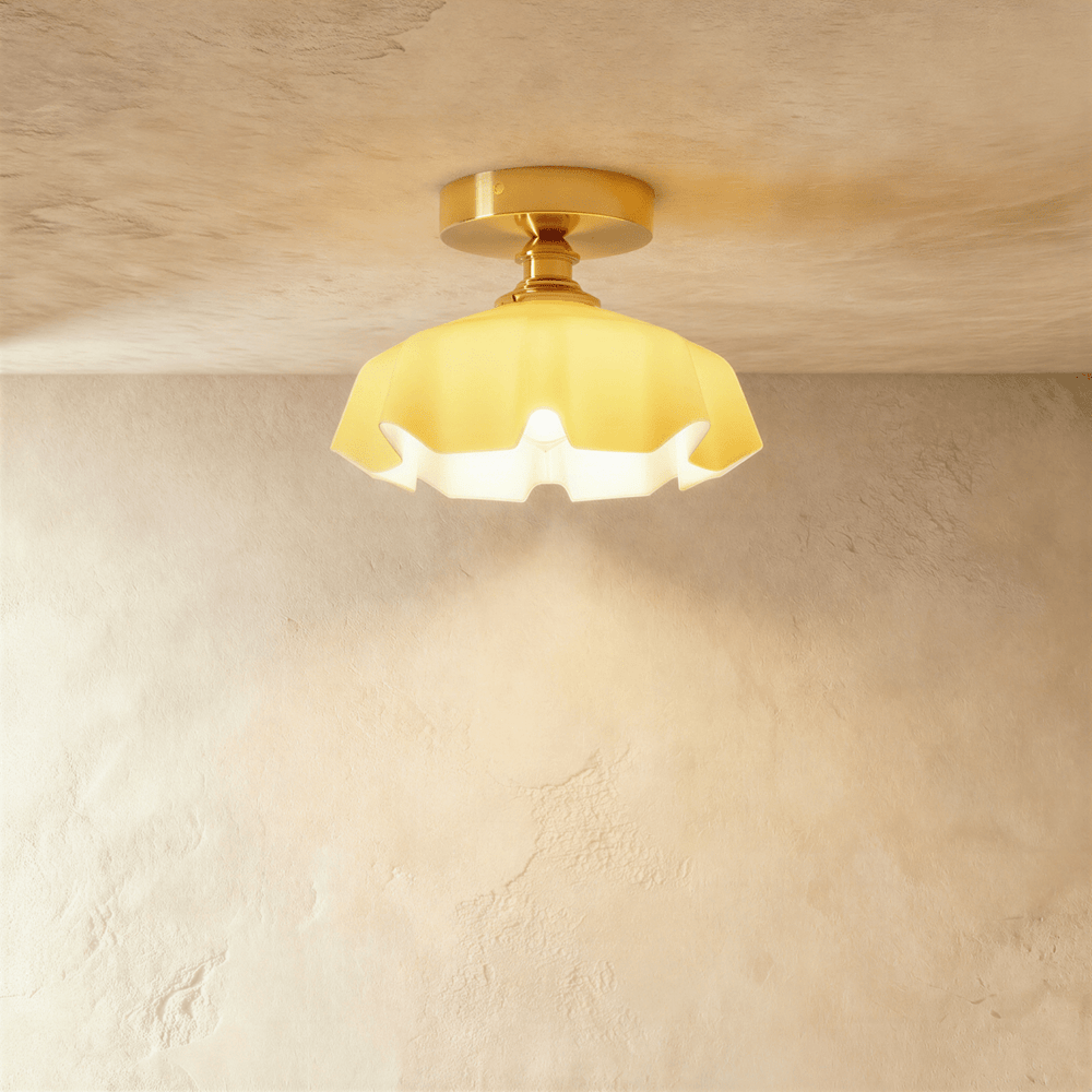 Transform your space with the daring and adventurous Mamar Ceiling Light. With its striking flowers glass design, this light will inspire and challenge you to take risks and elevate your home decor. Perfect for your dining room, kitchen, bedroom, bedside, balcony, or any ceiling in your home.