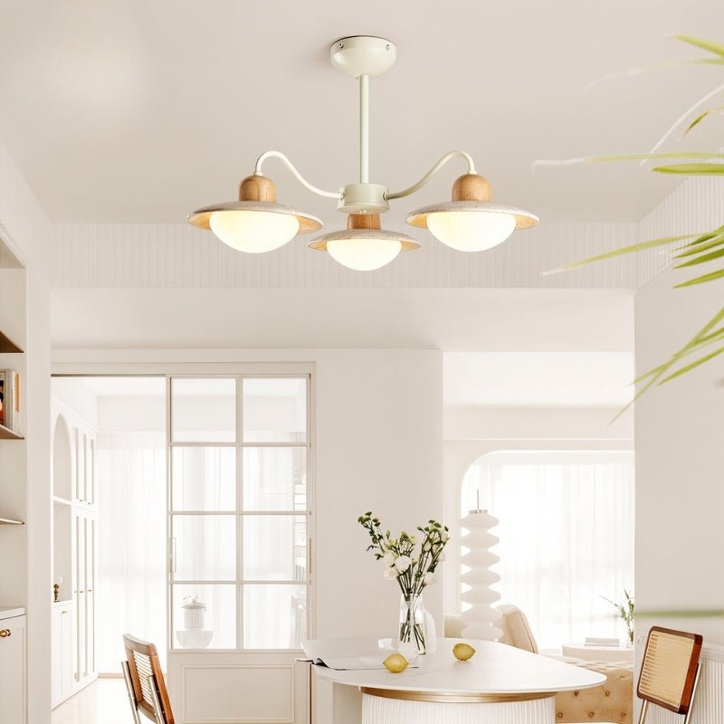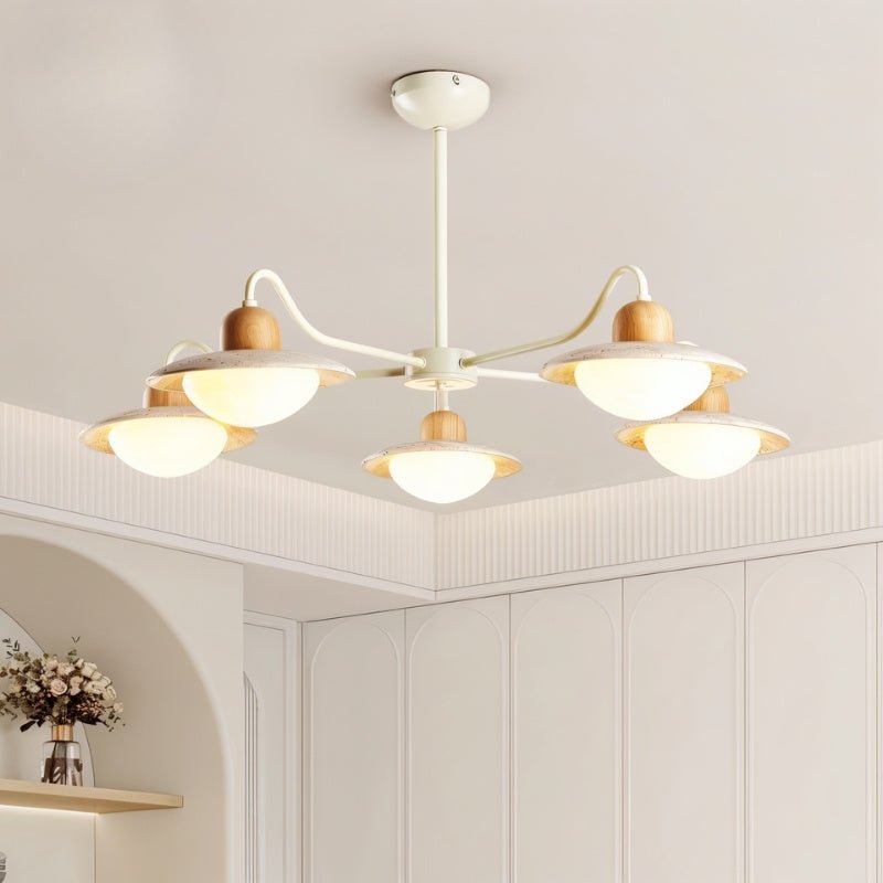 Curved arms in natural wood deliver warm, diffused light, creating an inviting atmosphere — perfect for dining rooms, living areas, or intimate bedrooms.