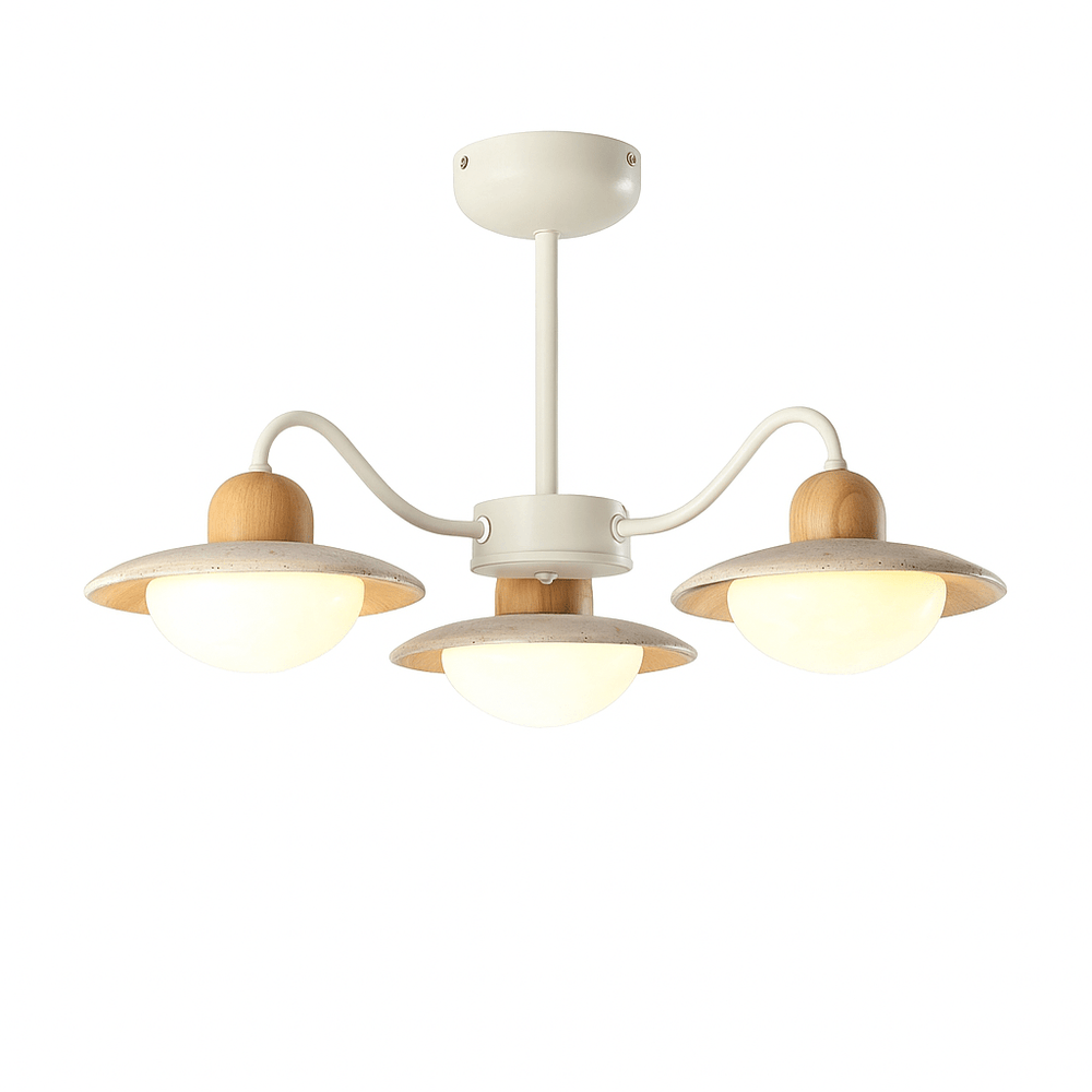 The Mantra Chandelier is a refined light fixture crafted from travertine and natural wood, combining minimalist design with rustic charm. Its curved arms and elegant lampshades provide warm, diffused lighting, perfect for dining rooms, living areas, or bedrooms. This timeless piece enhances both contemporary and traditional interiors, serving as an elegant and functional centerpiece.