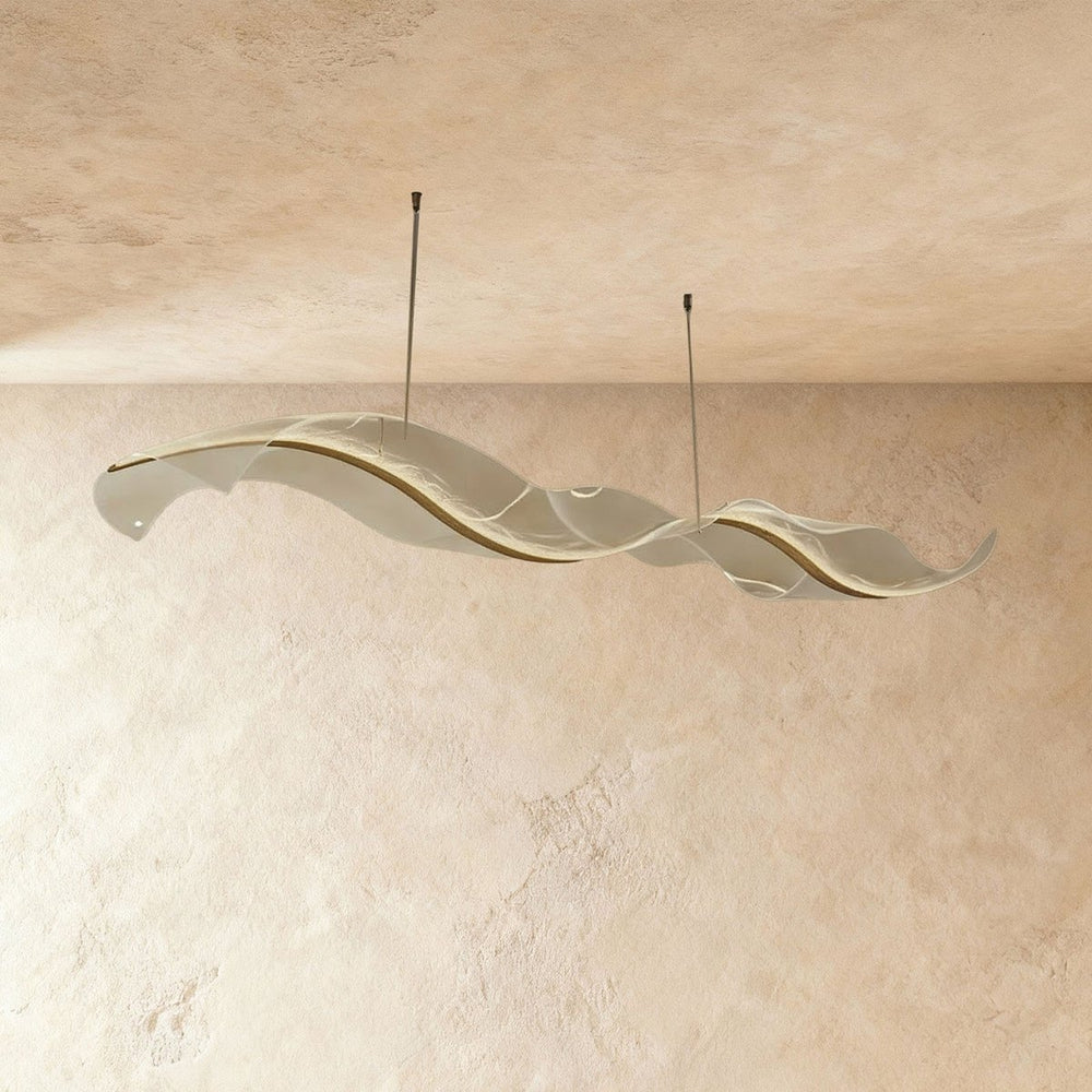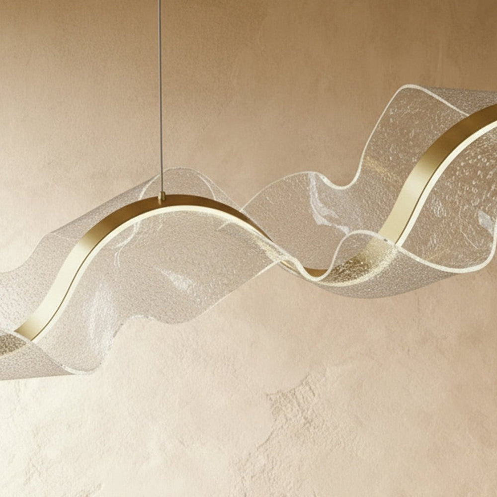La lámpara de araña Marianne encarna el pináculo de la sofisticación y el refinamiento. Una distintiva forma ondulante elaborada en acrílico transparente emana una energía dinámica que llama la atención en cualquier entorno, mientras que la solitaria cinta de aluminio pulido con acabado dorado acentúa su opulento atractivo. Esta lámpara de araña, que ilumina su sala de estar con un resplandor suave y elegante, es una obra maestra luminosa y un punto focal exquisito que imparte un toque de glamour a cualquier espacio.