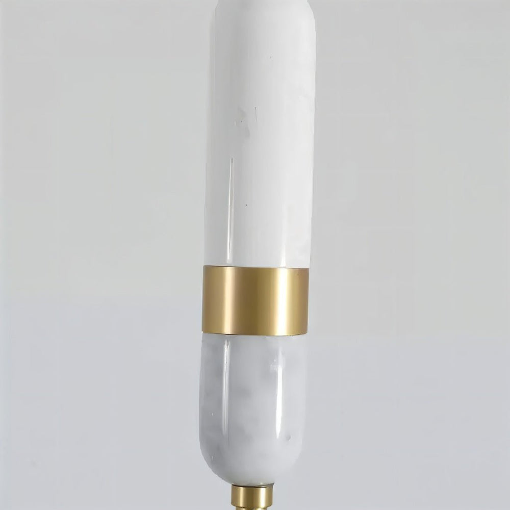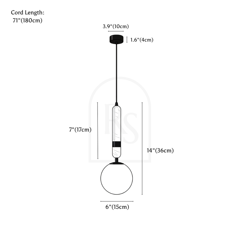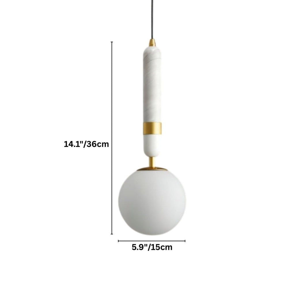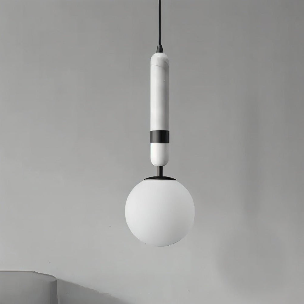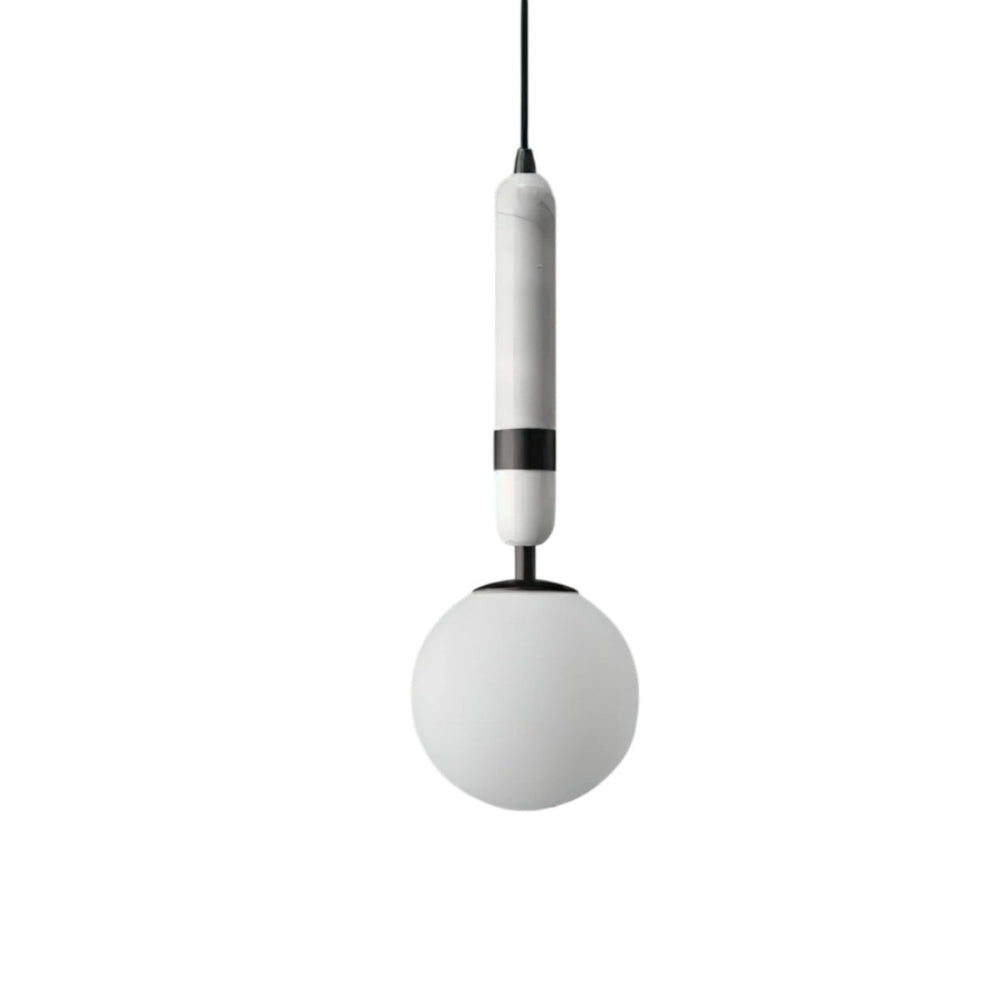 The Marlo pendant light fixture features a cylindrical marble top paired with warm copper accents and a frosted glass globe for soft, even illumination. The marble adds natural texture, while the copper detailing introduces a refined contrast. Its elongated vertical form complements modern and contemporary interiors. Crafted from copper, marble, and glass, this pendant light fixture is perfect for kitchen islands, dining spaces, bedside areas, or as a focal point in living rooms and hallways.