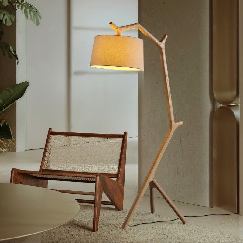Meraku Floor Lamp has a beautiful wooden body that gives it a warm, natural look. The fabric lampshade provides a soft, diffused light, creating a cozy atmosphere. It's both stylish and functional, making it a great addition to any room. Perfect for living rooms, bedrooms, or reading nooks, this lamp blends design and usefulness seamlessly.
