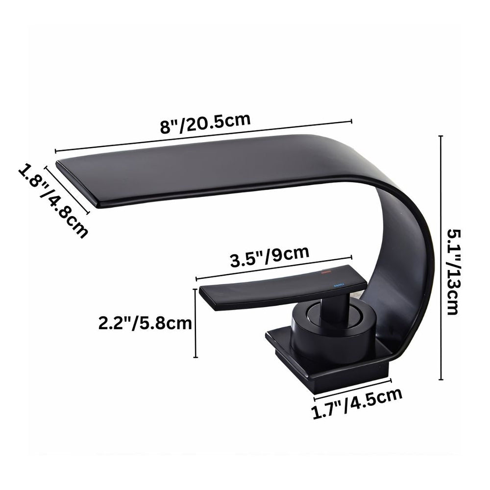 Mindad faucet combines modern minimalism with sleek functionality, crafted from durable brass. Its various finishes enhance contemporary spaces. The wide, flat spout delivers a smooth waterfall effect, creating a striking visual that complements minimalist or industrial design aesthetics.