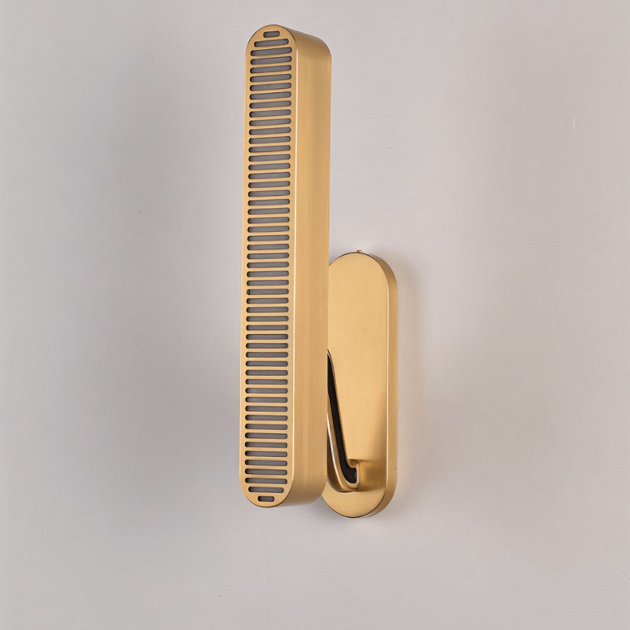 Material: Acrylic, Iron, Brass Finish: Brass Light Source: Integrated LED Dimmable: Upon Request Voltage: 90-260VAC Installation Type: Wall Mount Canopy/Backplate Dimensions: L3.9"(10cm) x H9"(23cm) Certifications: UL, CCC, CE, CQC, EMC, FCC, GS, LVD, PSE, ROHS, SAA, and VDE