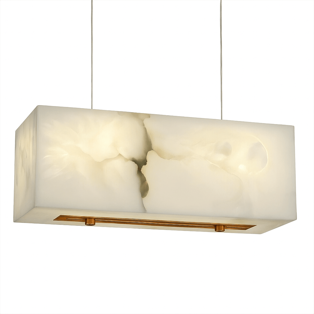 The Nekhen Alabaster Chandelier Light is highly durable, crafted from eco-friendly natural gypsum with a lightweight yet robust construction, ensuring long-term reliability.