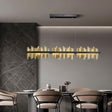 The Ninda Linear Chandelier enhances the ambiance by exuding sophistication and adding a touch of luxury to any space. Its elegant crystal design, combined with a metal frame, blends modern style with industrial charm, creating a captivating atmosphere. The chandelier offers warm and radiant illumination that elevates the elegance of lounge areas, ensuring that your living space is both inviting and visually stunning. With adjustable dimmable options, it provides the perfect lighting to suit any mood or occasion, making it a versatile and stylish addition to your home decor.