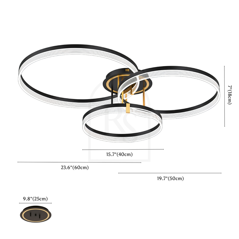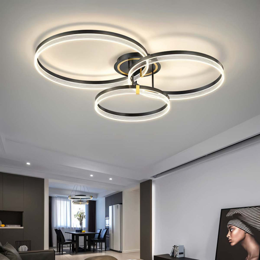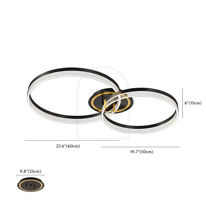 The Nudara Ceiling Light showcases a sleek, geometric design that merges modern minimalism with luxurious detail. Crafted fromiron and acrylic, this light fixture features precision-formed circular rings with integrated LED illumination, producing a balanced, radiant glow. Its refined black-and-gold finish adds subtle sophistication, while the slim profile ensures a clean and seamless ceiling presence. Available in multiple ring configurations, it’s perfect forliving rooms, bedrooms, dining spaces, or offices, enhancing contemporary interiors with sculptural elegance and uniform ambient lighting.