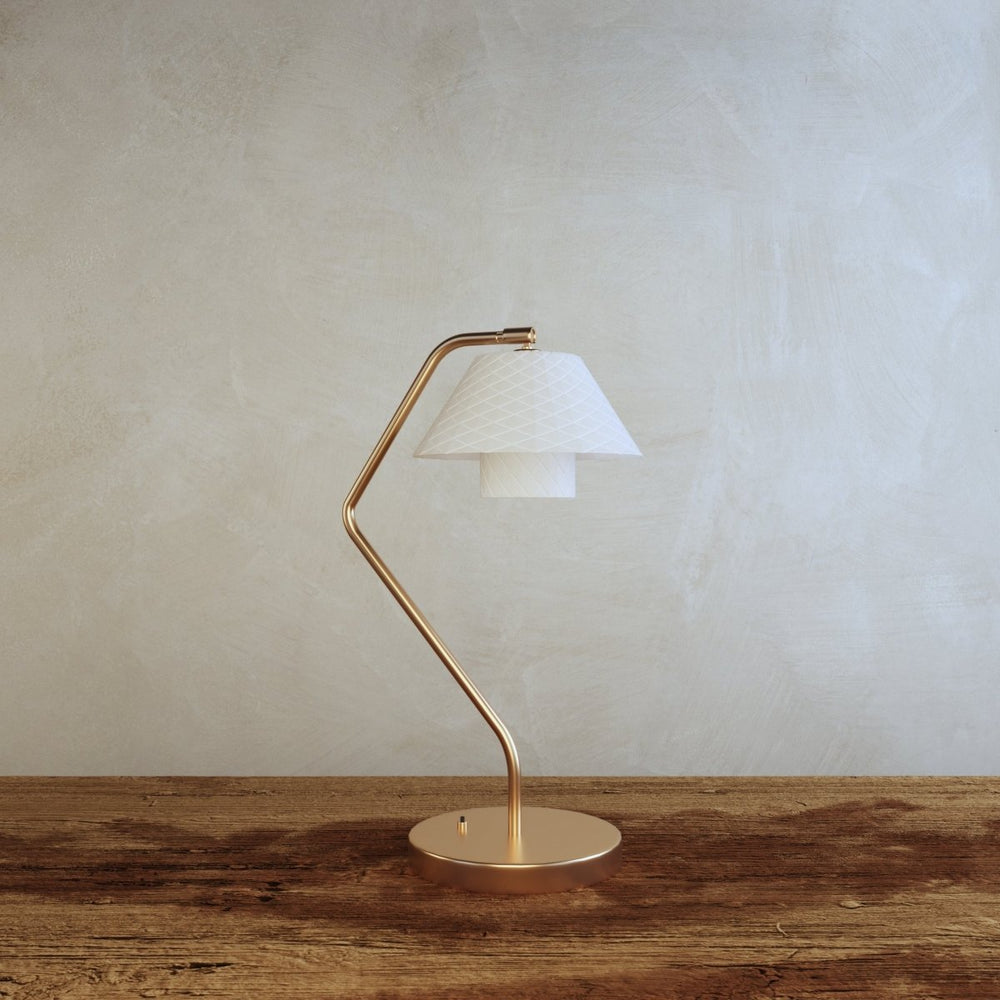 This lamp is available in a single color that showcases a harmonious blend of brass and white ceramic.