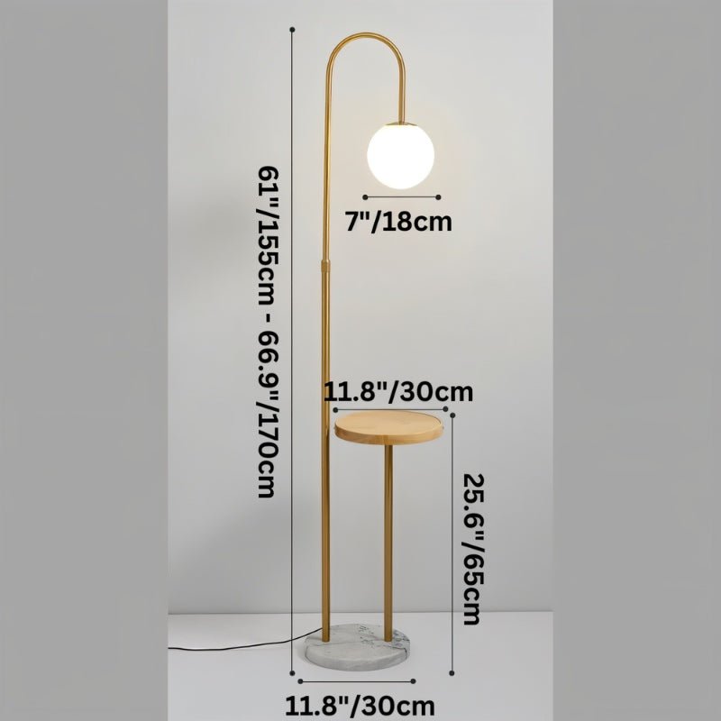 Okul Floor Lamp With Smart Side Table combines technology and style. With wireless and wired charging features, this lamp has a solid marble base and offers a choice between a wooden top, iron top and white marble for the side table. Perfect for living rooms or bedrooms, it adds an artistic and elegant touch to your space while providing convenient charging options for your devices.