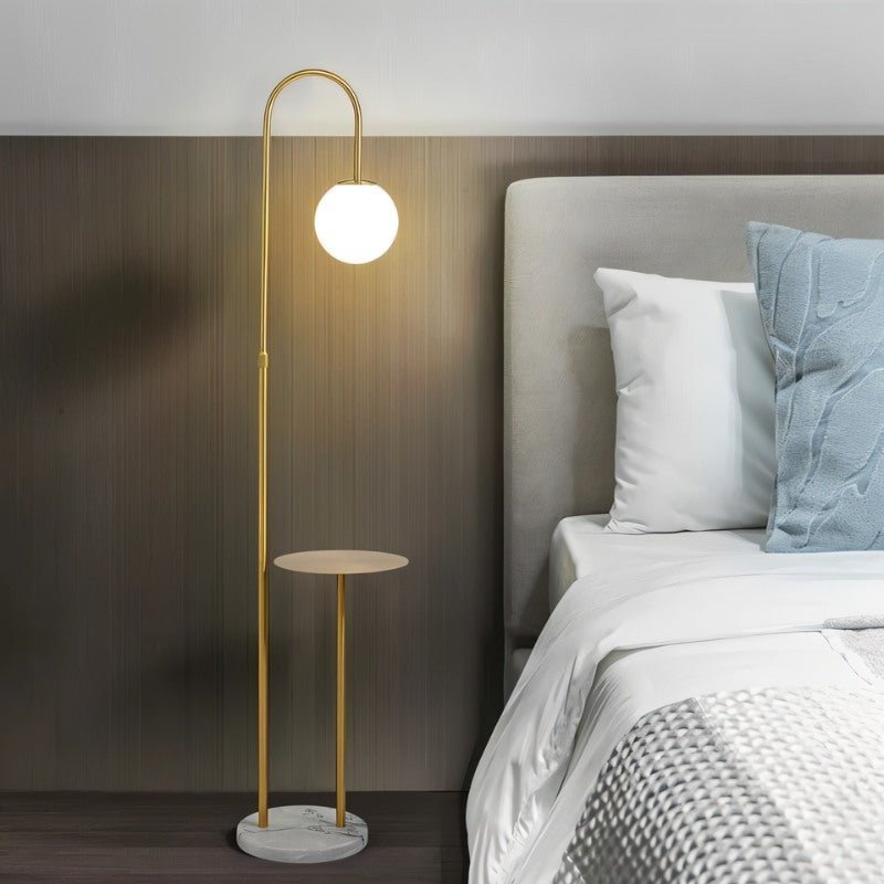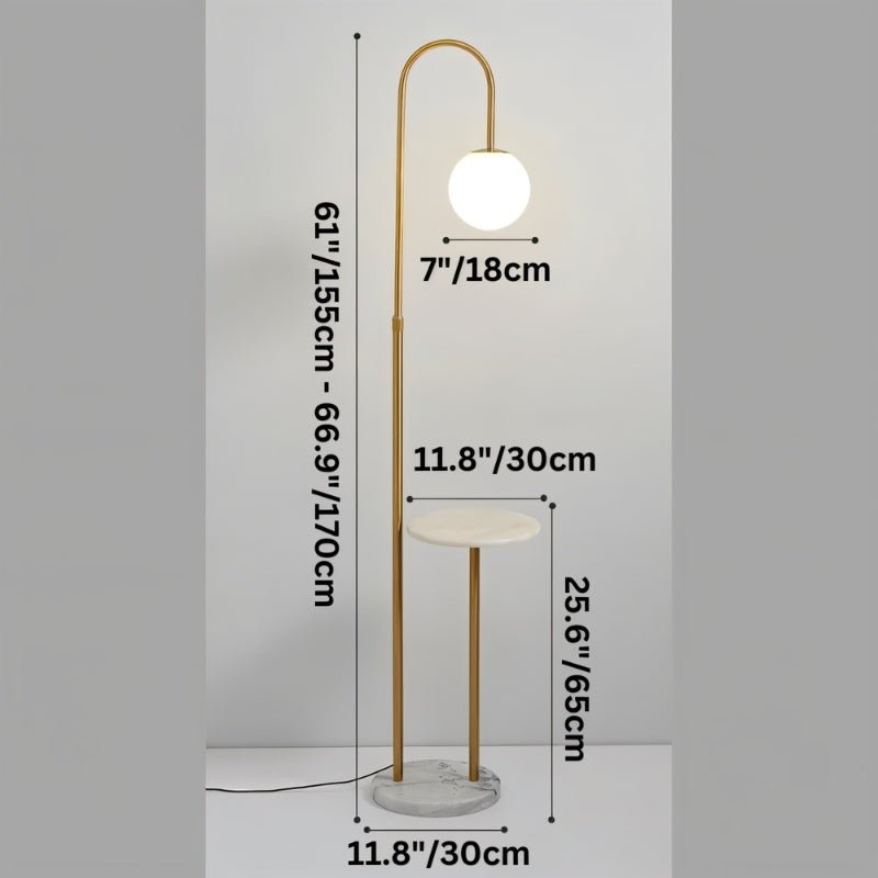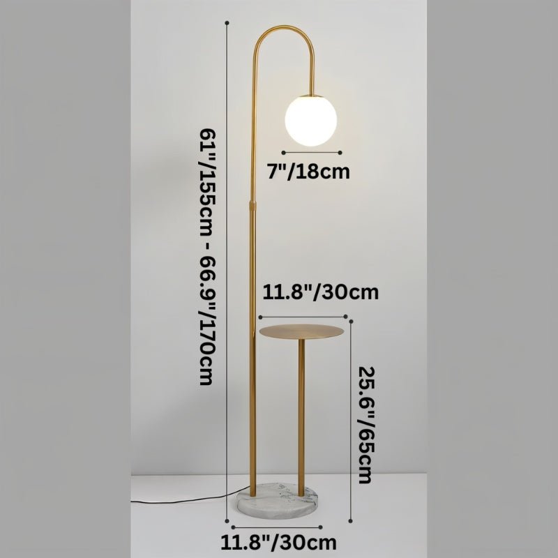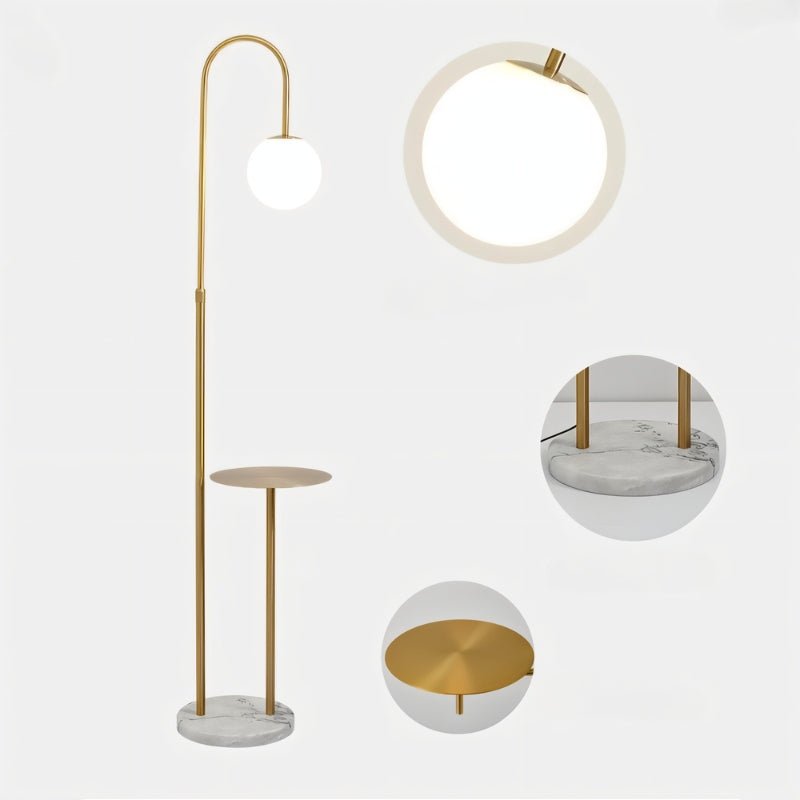 The marble base of the Okul Floor Lamp With Smart Side Table is well-built with attention to detail, ensuring lasting durability.