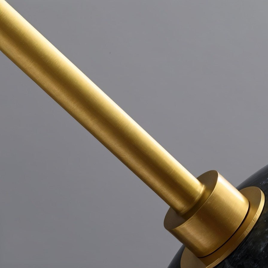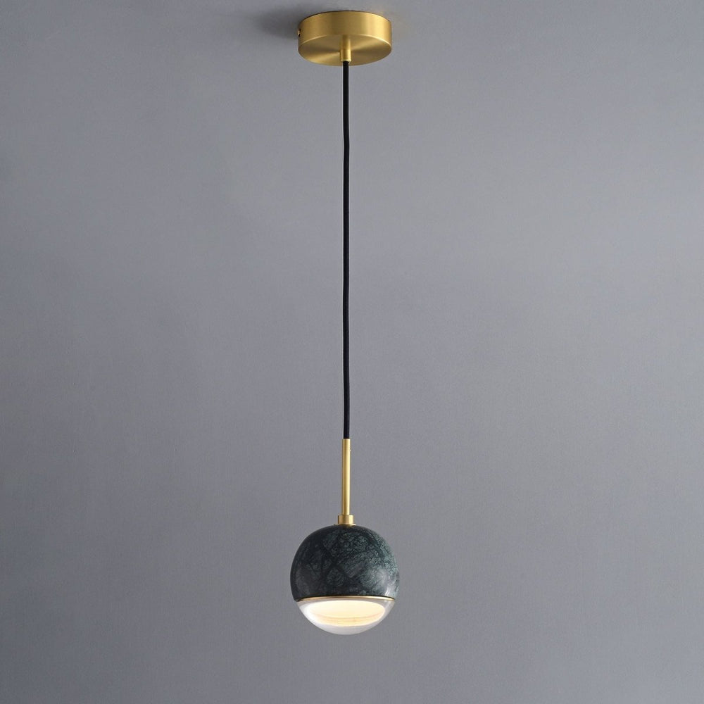 The Orren Pendant Light is a refined light fixture made from copper, marble, and glass. Its spherical form pairs a polished black marble upper half with a smooth white glass diffuser, joined by a sleek copper stem. The marble adds natural texture, while the glass softly diffuses light for warm ambient illumination. Ideal for bedside lighting, dining areas, kitchen islands, or hallway accents, it combines function with modern elegance.