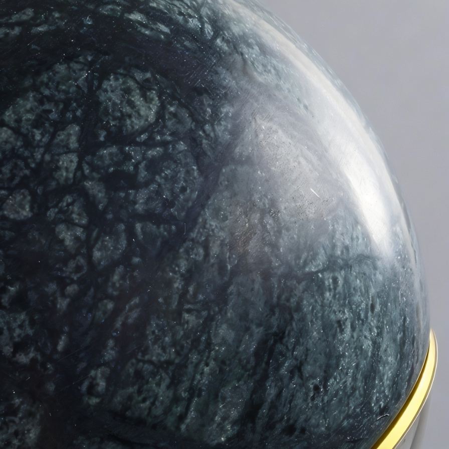 - Spherical marble and glass create modern elegance