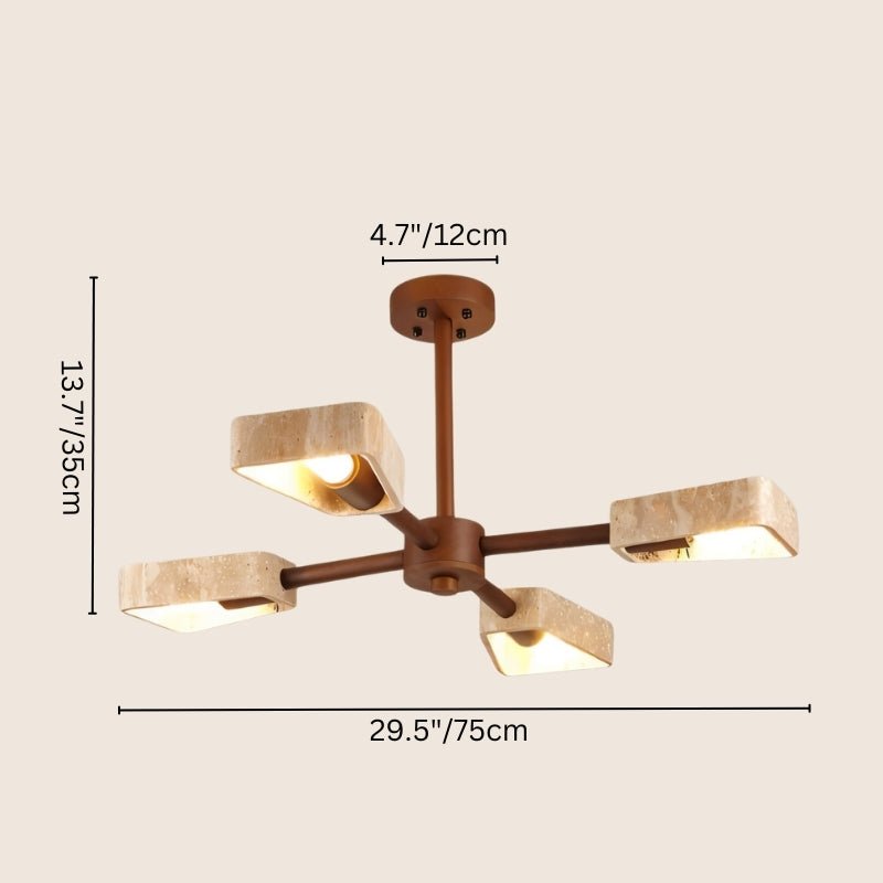 The Riona Ceiling Lamp is a stylish light fixture crafted from natural travertine and wood, offering a sophisticated blend of modern and rustic design. Its geometric or curved elements complement contemporary, minimalist, and rustic interiors. Ideal for living rooms, dining areas, bedrooms, and entryways, it provides soft ambient lighting while serving as a statement decor piece. The durable materials and balanced structure enhance both functionality and aesthetics in any space.