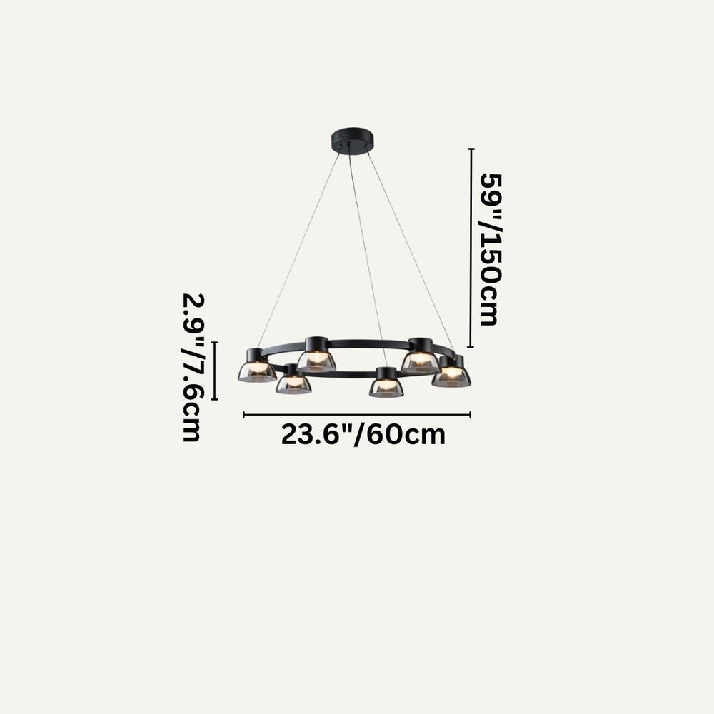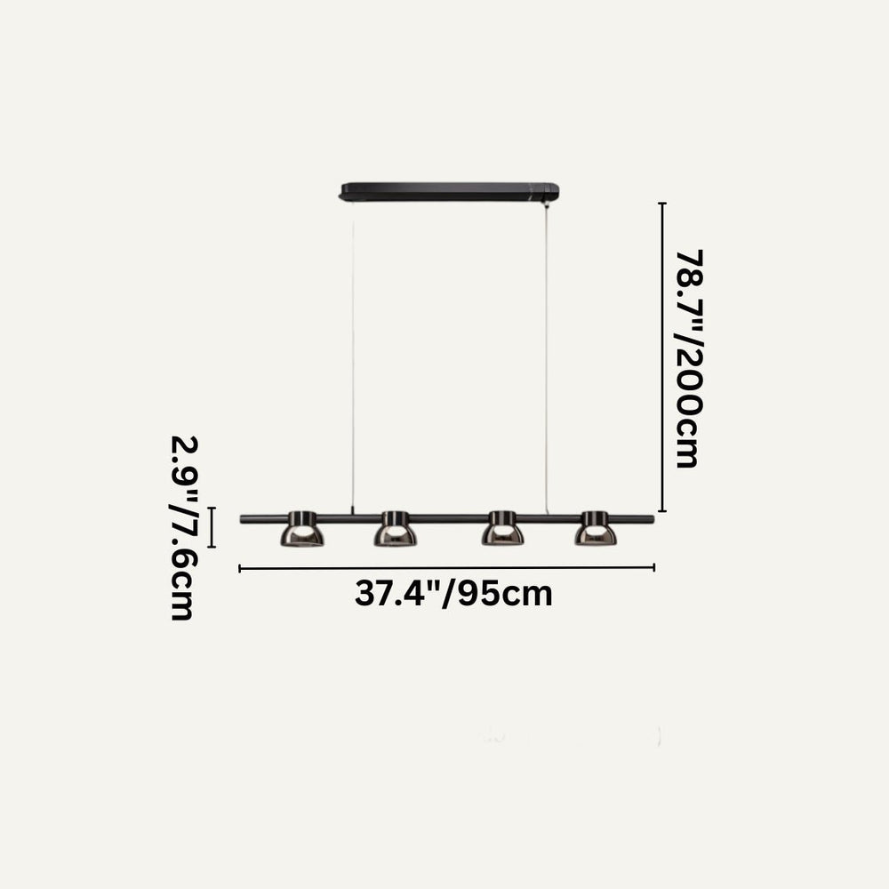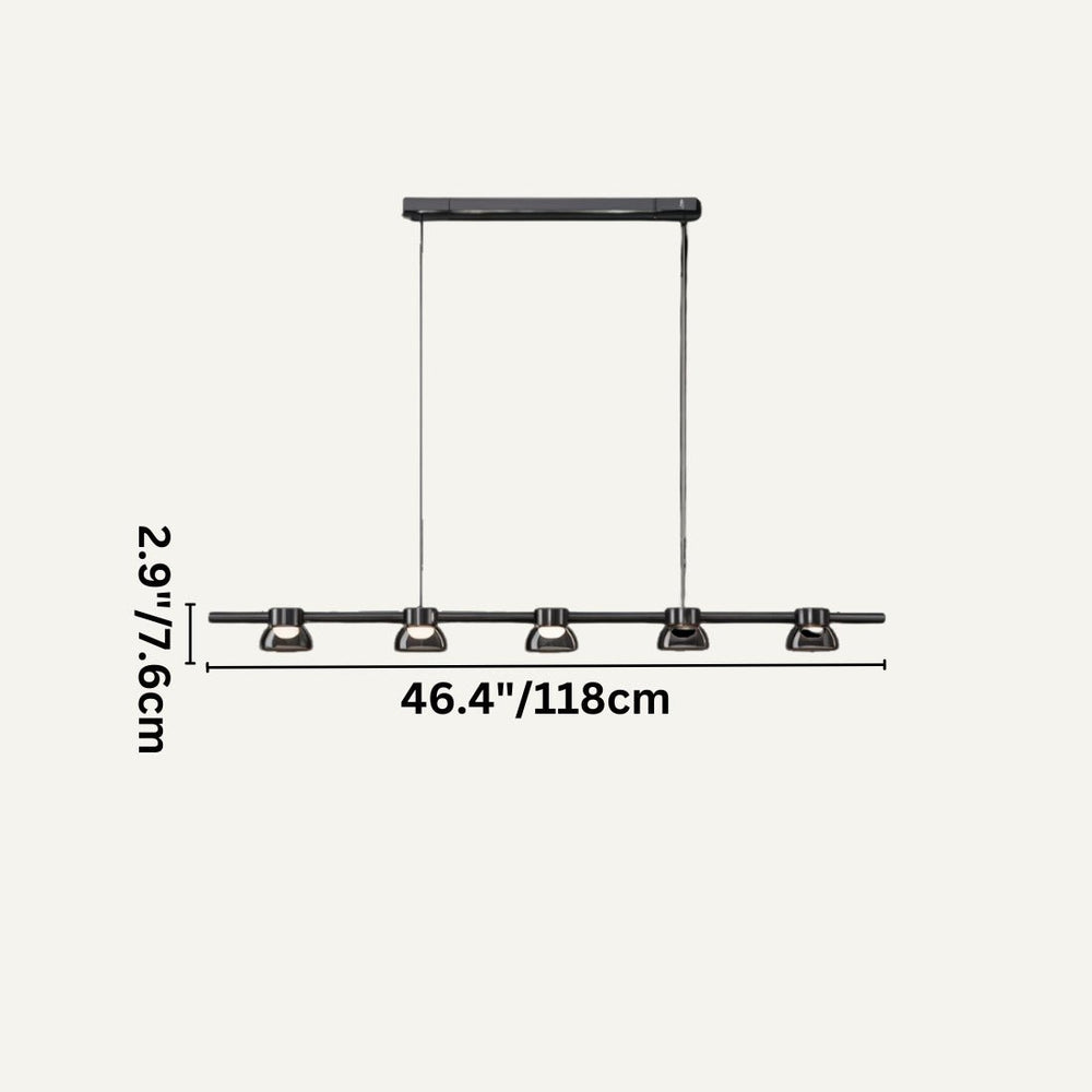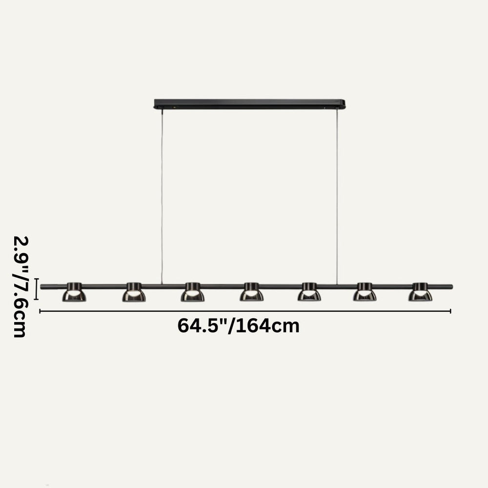 Product Dimensions: 6 Heads Round - 23.6" x 2.9" / 60 x 7.6cm, 9 Heads Round - 31.4" x 2.9" / 80 x 7.6cm, 12 Lights Round - 39.3" x 2.9" / 100 x 7.6cm, 4 Lights Linear - 37.4" x 2.9" / 95 x 7.6cm, 5 Lights Linear - 46.4" x 2.9" / 118 x 7.6cm, 6 Lights Linear - 55.5" x 2.9" / 141 x 7.6cm, 7 Lights Linear - 64.5" x 2.9" / 164 x 7.6cm Material: Metal, Glass Finish: Black Light Source: LED Light Bulb (replaceable) Bulb Included: Yes Number of Bulbs: 4, 5, 6, 7, 9, 12 Dimmable: Yes (Optional) Lumens: 110lm/watt Voltage: 90-260VAC Installation Type: Hardwired Chain/Cord Length: Up to 6.6ft (2 meter) Adjustable Cord: Yes Sloped Ceiling Compatible?: Upon Request Certifications: UL, CCC, CE, CQC, EMC, FCC, GS, LVD, PSE, ROHS, SAA, and VDE