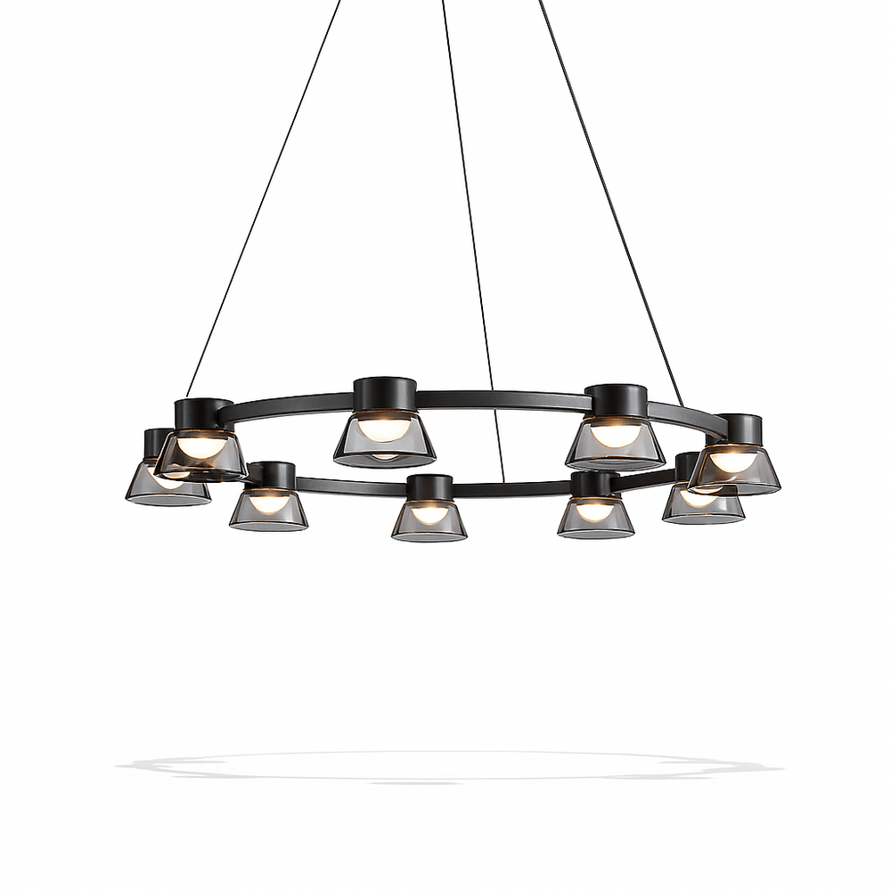 This elegant chandelier is made from high-quality metal and glass, combining durability with style. It comes in both round and linear shapes, fitting different spaces perfectly. The metal frame supports glass shades that spread light beautifully, creating a warm and inviting atmosphere. Ideal for living rooms, dining areas, or entryways, it adds a sophisticated touch to any modern interior.
