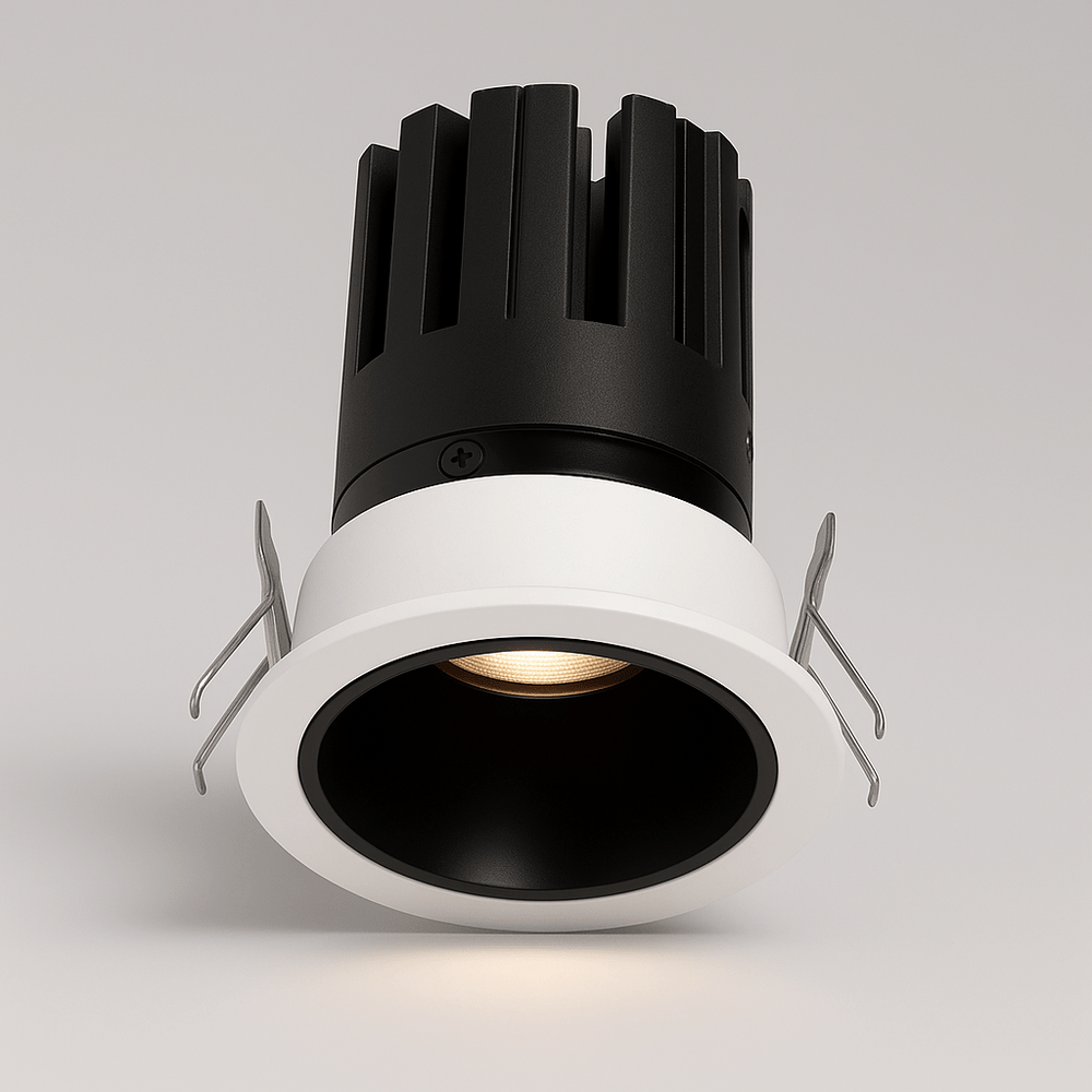 The Silis Downlight is a modern recessed fixture that delivers a clean, architectural look. Built from durable aluminium and plastic, it features a heat-dissipating black housing with a contrasting white trim for refined appeal. Its adjustable design allows installation even on sloped ceilings, while the deep-set black reflector minimizes glare and provides smooth, focused illumination.