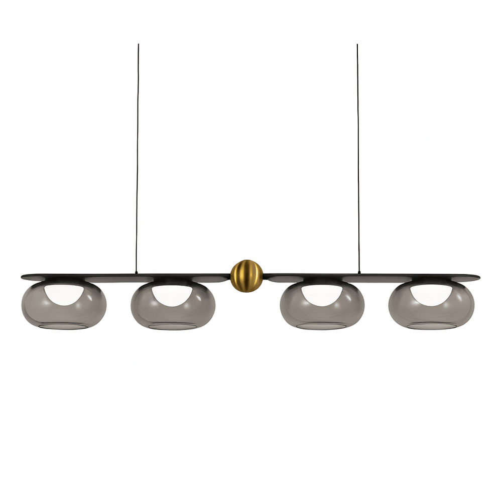 Sleek black metal frame and spherical glass shades provide warm illumination and adjustable brightness — perfect for modern dining rooms, kitchens, or living spaces.