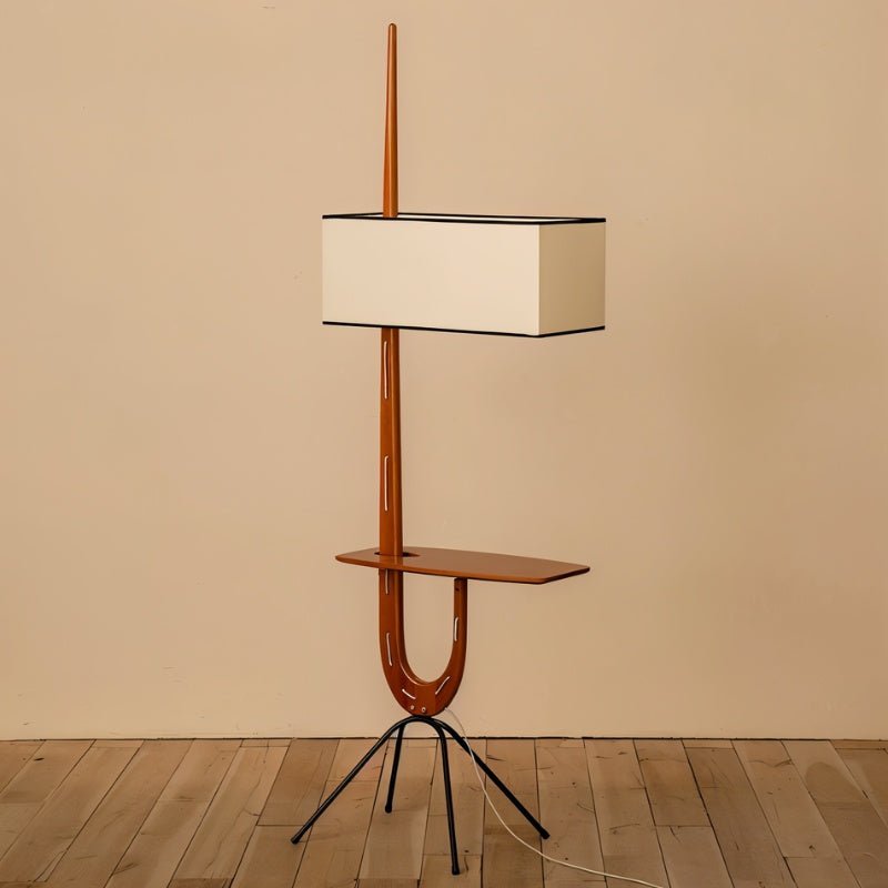The Solvanna Floor Lamp with Side Table combines function and style with its sleek wooden frame and fabric lampshade. This versatile light fixture offers warm, diffused lighting while providing a built-in side table for added convenience. Perfect for living rooms, bedrooms, or reading nooks, it enhances modern and minimalist interiors with its practical design and elegant aesthetic.