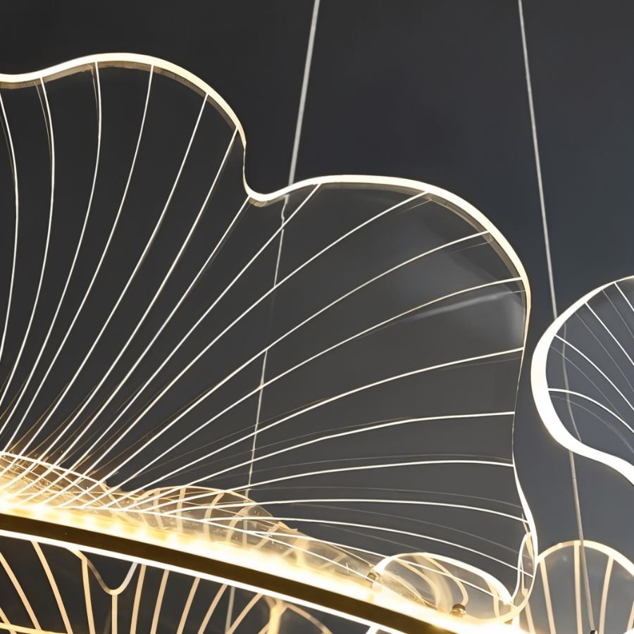 Gold-finished iron frame paired with intricate acrylic shades for timeless sophistication.