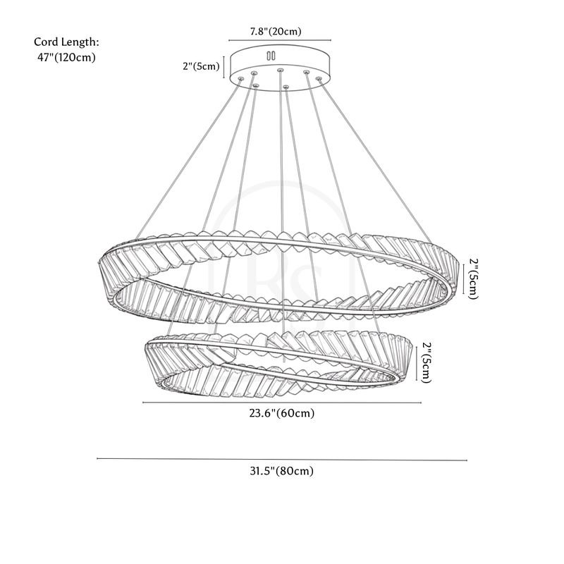 The Tiwa 2-Tier Chandelier is equipped with energy-efficient LED lights, designed to provide long-lasting illumination while minimizing energy consumption. These LEDs boast an impressive operating life of 50,000 hours, ensuring that they can deliver consistent, bright lighting without frequent replacements. The chandelier's use of 90-260V LED technology not only enhances the brightness and evenness of the light output but also contributes to its energy efficiency, making it an ideal choice for those seeking both elegant design and sustainability in their lighting solutions.
