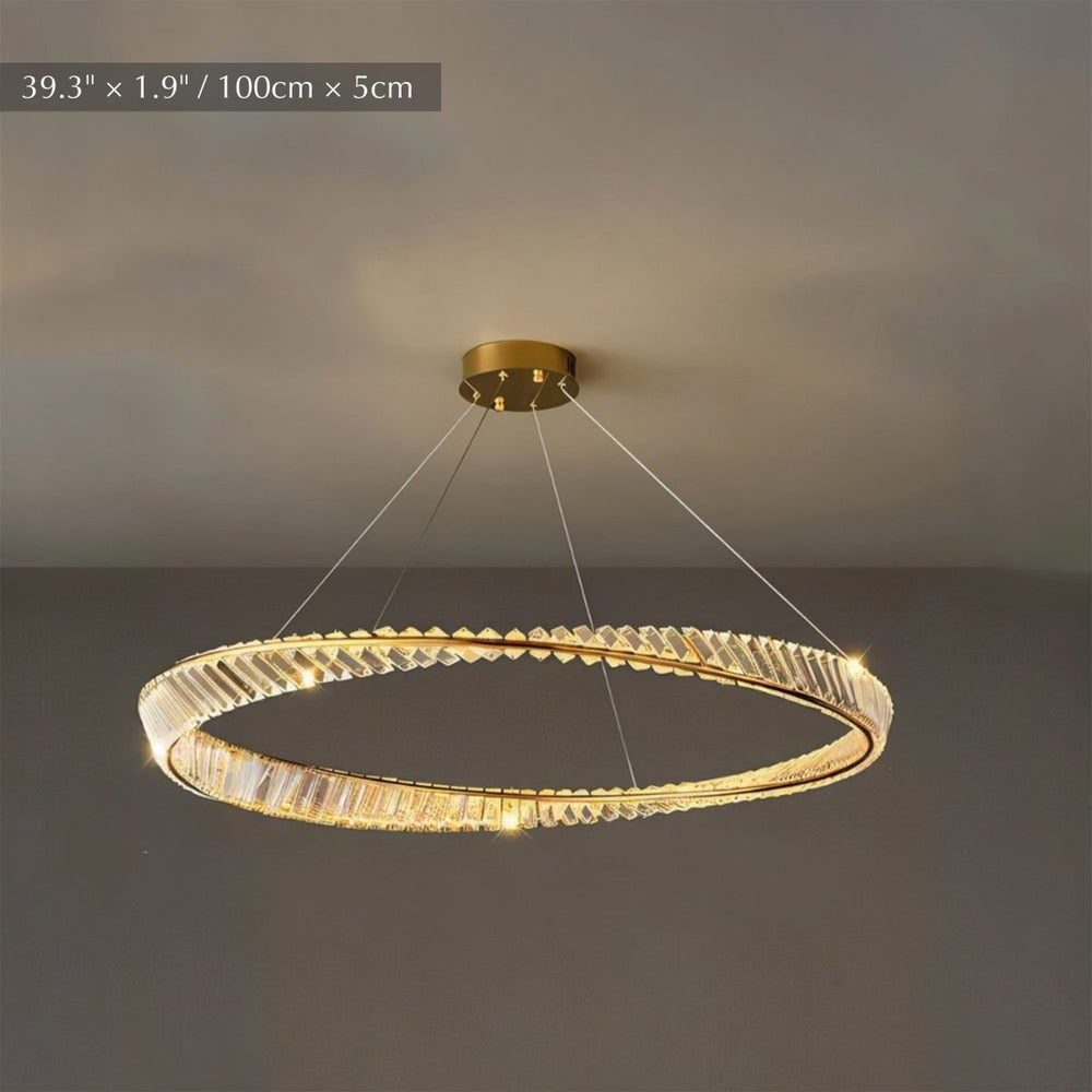 The Tiwa Chandelier is ideal for creating the perfect ambiance. Constructed from superior-grade Metal, this stylish lamp features innovative rings with a crystal lampshade to bring an elegant flair. Equipped with energy-efficient LED lights and a glass surface that refracts light, it is sure to illuminate any room captivatingly.