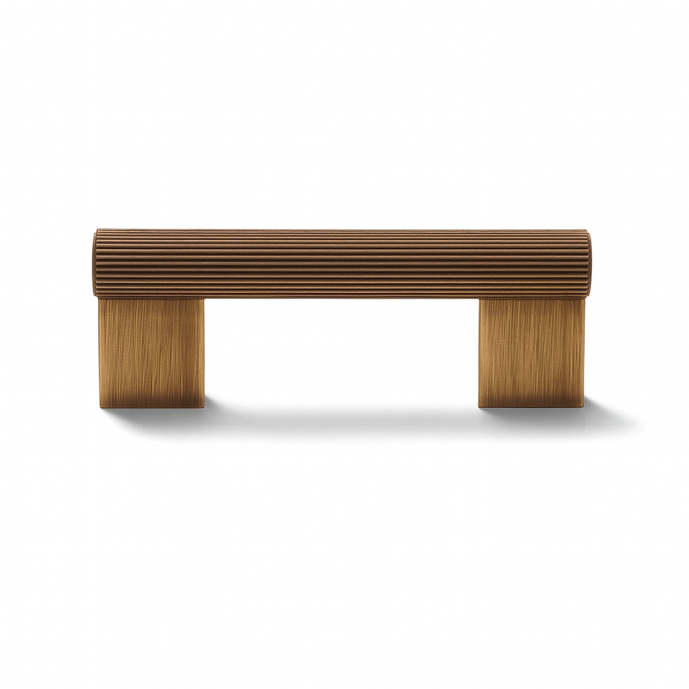 The Tobias Knob And Pull Bar is a modern brass handle featuring a sleek ribbed texture for a sophisticated, tactile design. Its solid brass construction ensures durability and a luxurious finish, ideal for cabinet doors, drawers, and wardrobe panels. Perfect for kitchens, bathrooms, and living spaces, it complements modern and transitional interiors seamlessly.