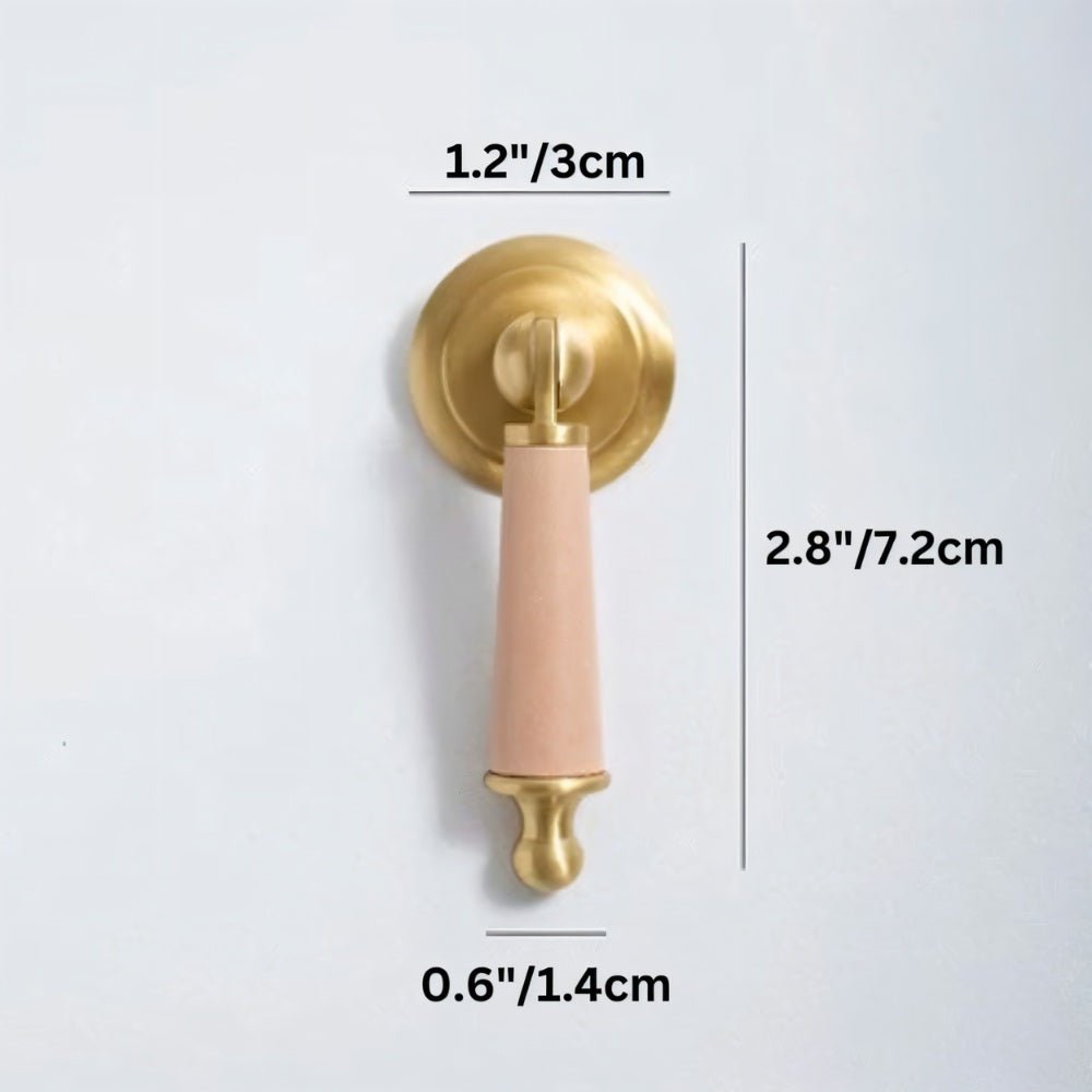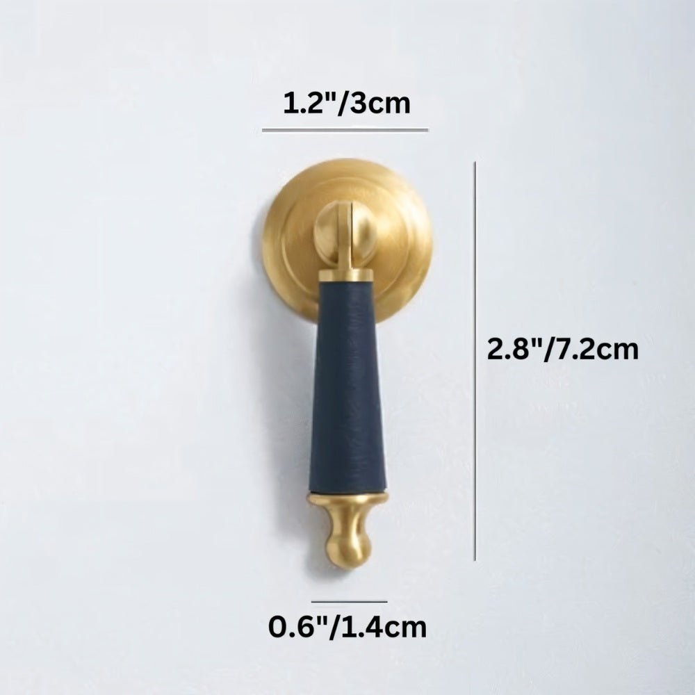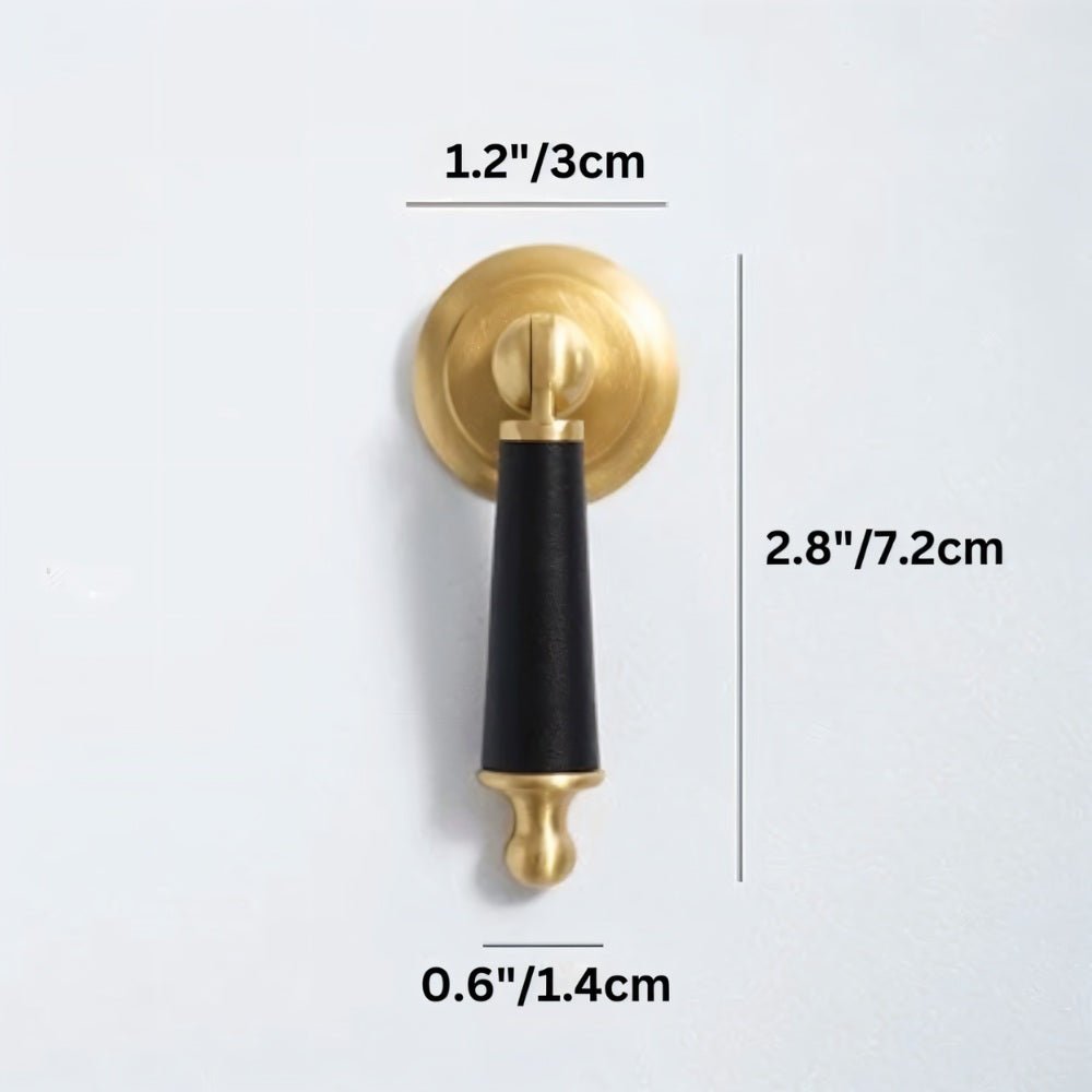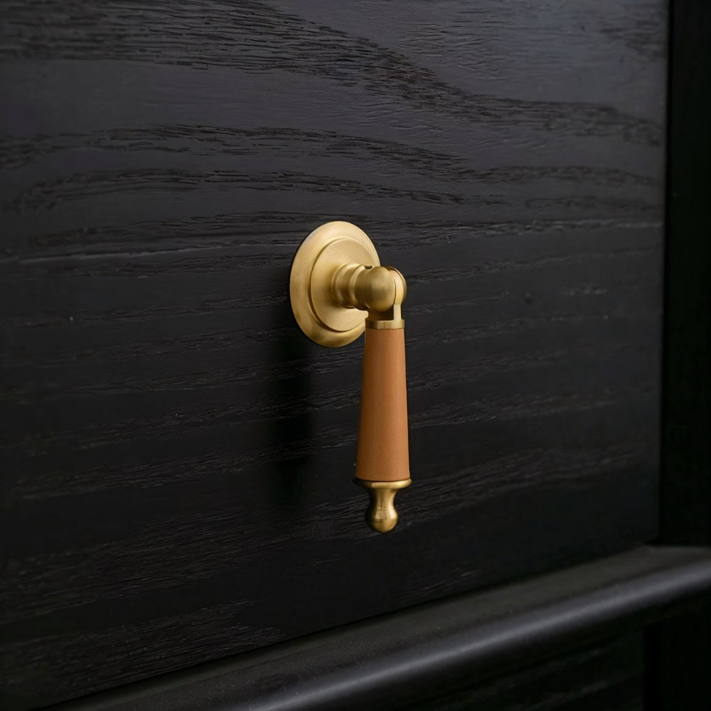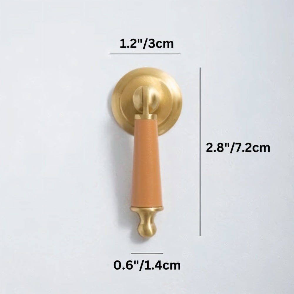 Solid brass and cowhide knob offers a comfortable grip and unique elegance — perfect for enhancing any room with a touch of individuality.