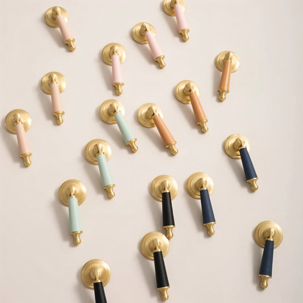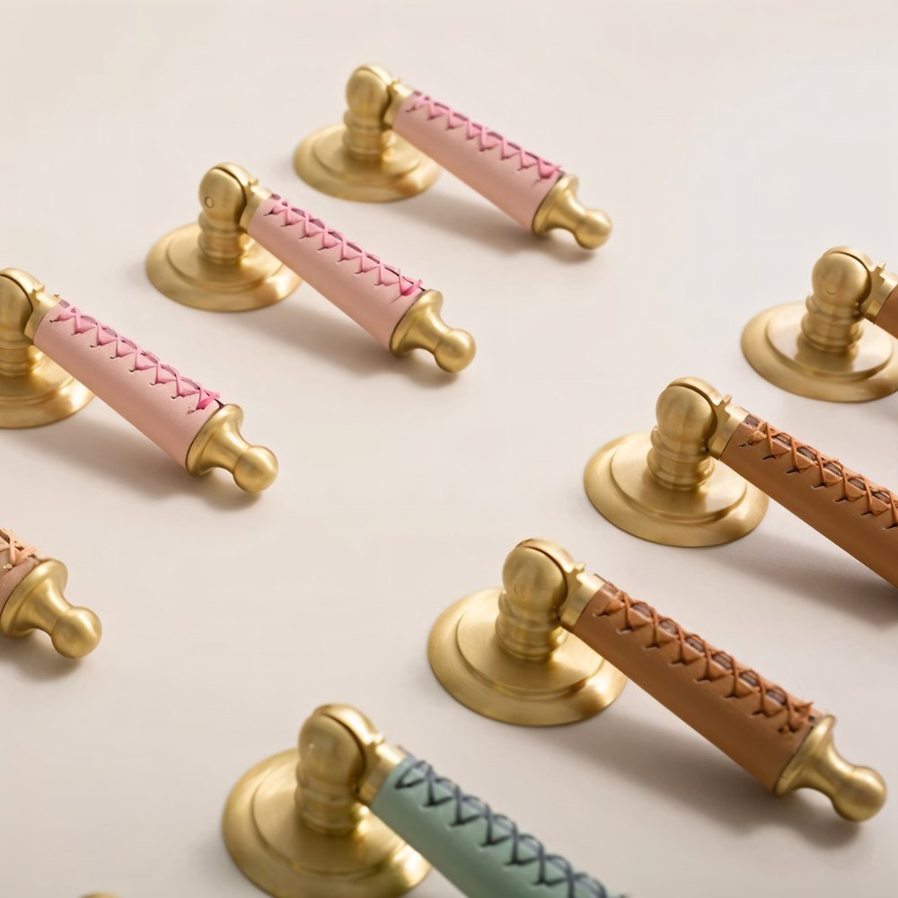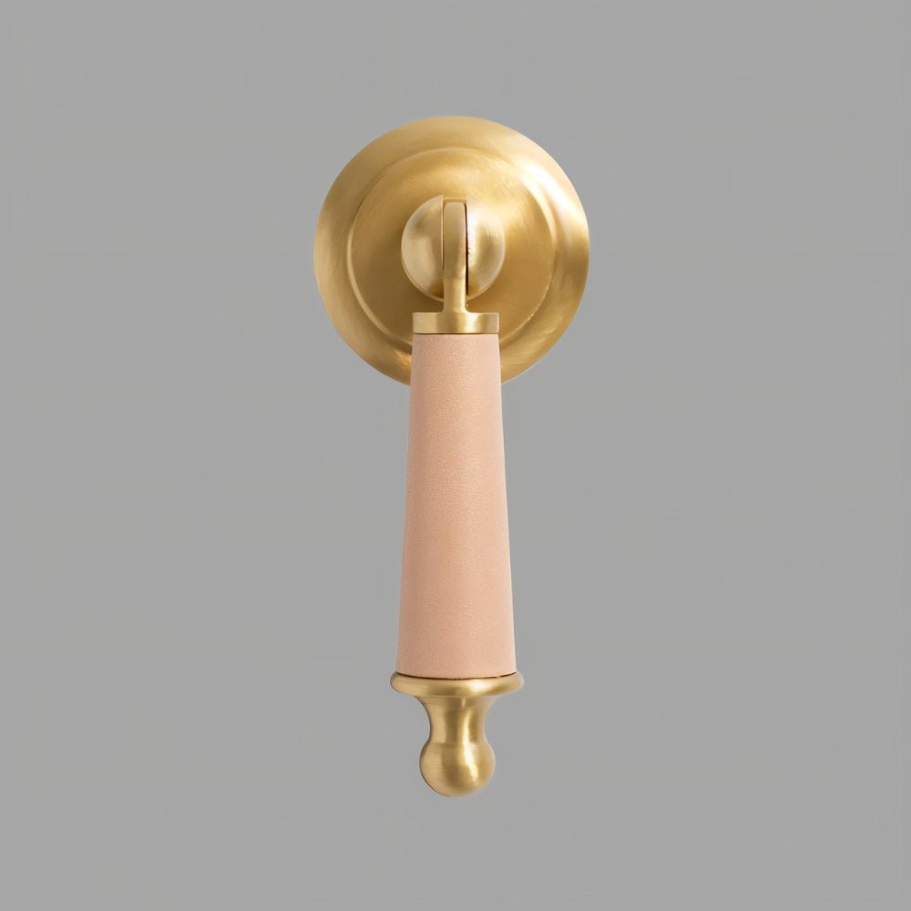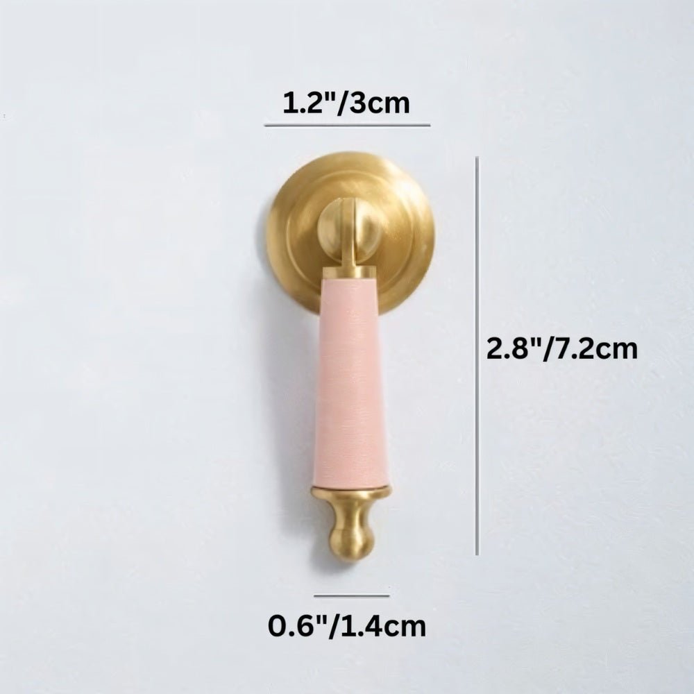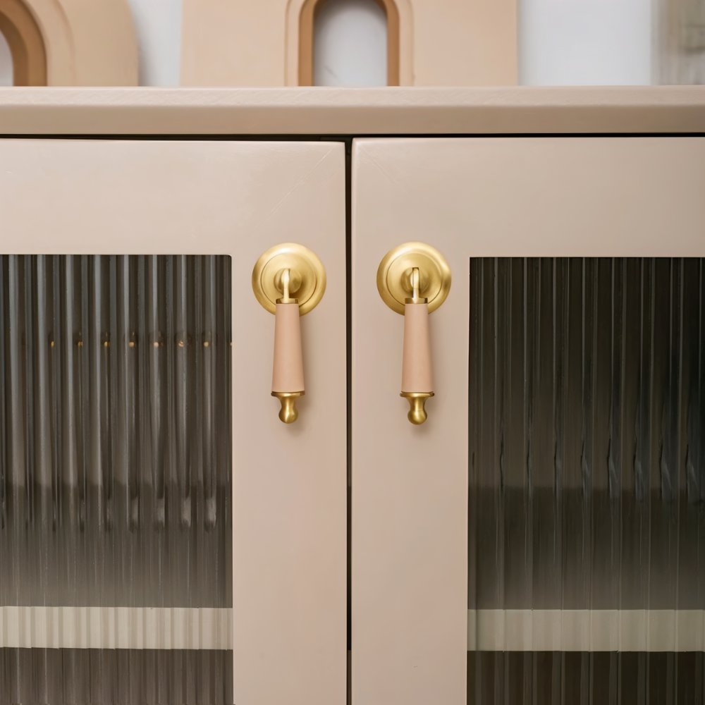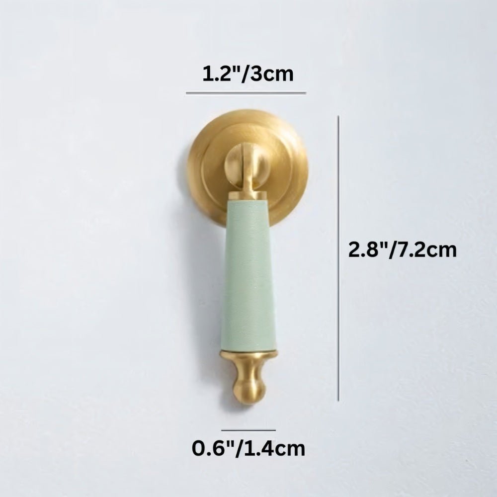 Solid brass and cowhide knob offers a comfortable grip and unique elegance — perfect for enhancing any room with a touch of individuality.