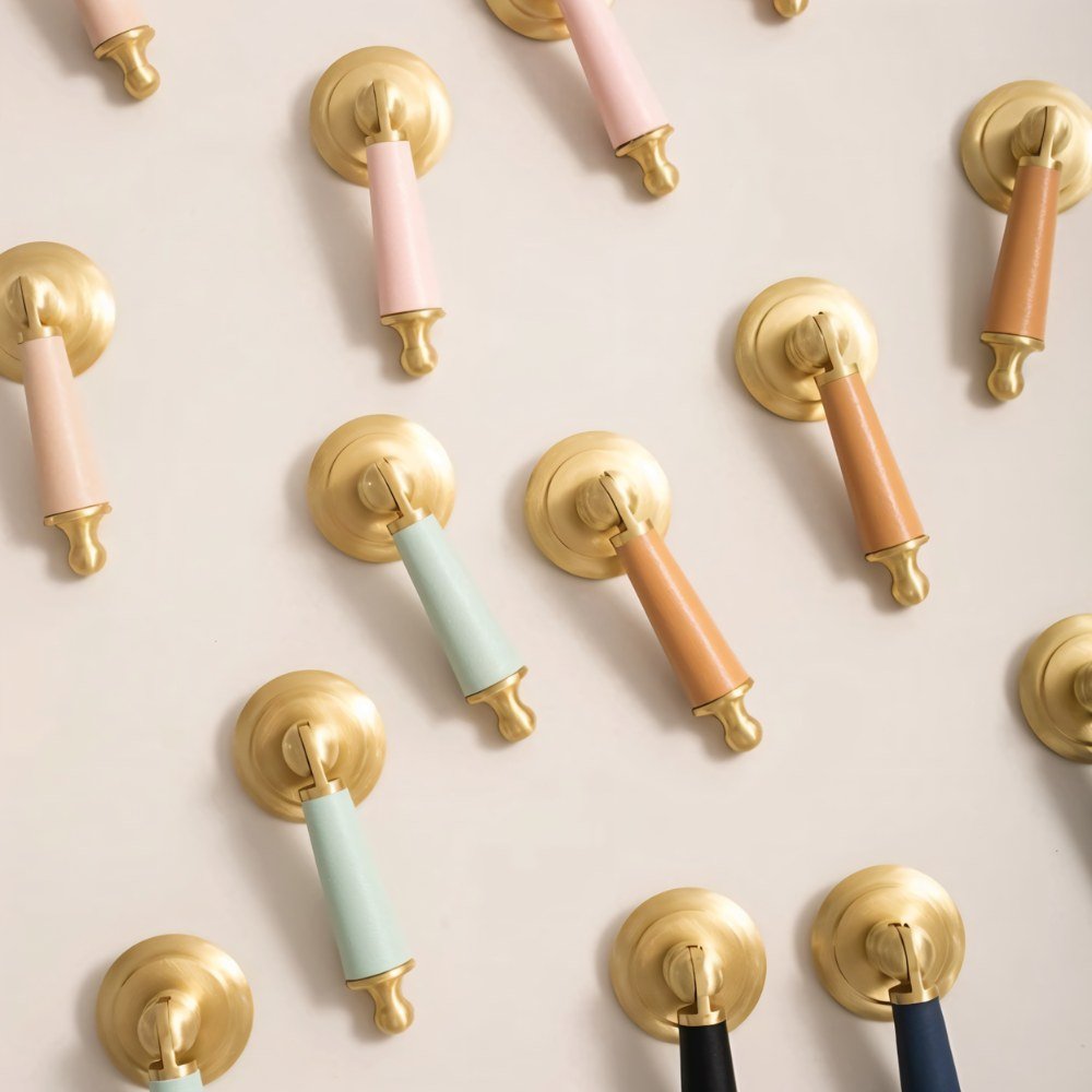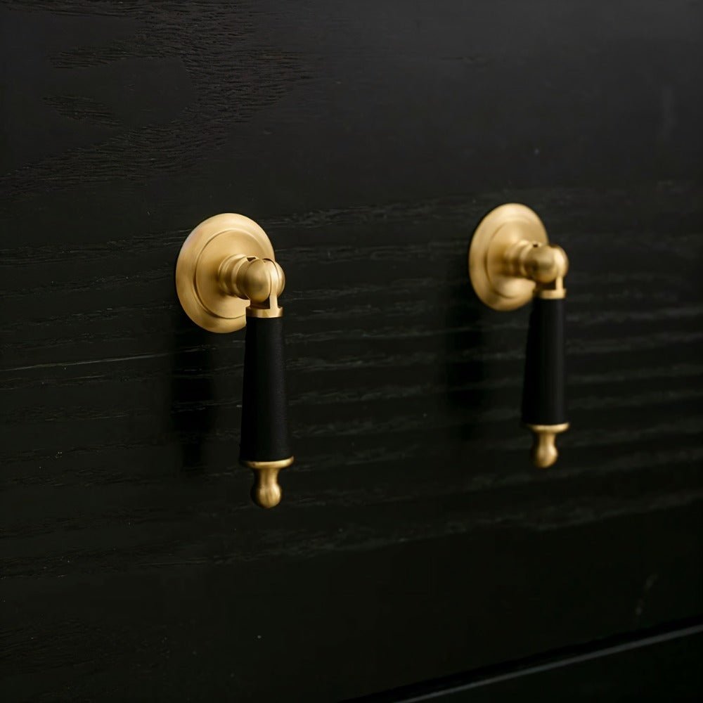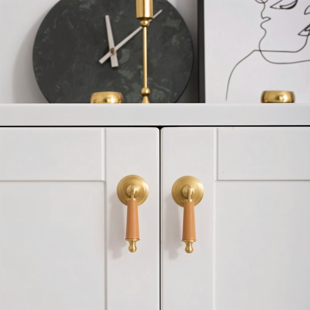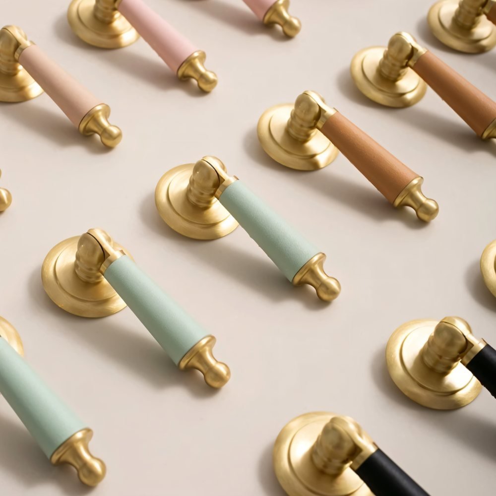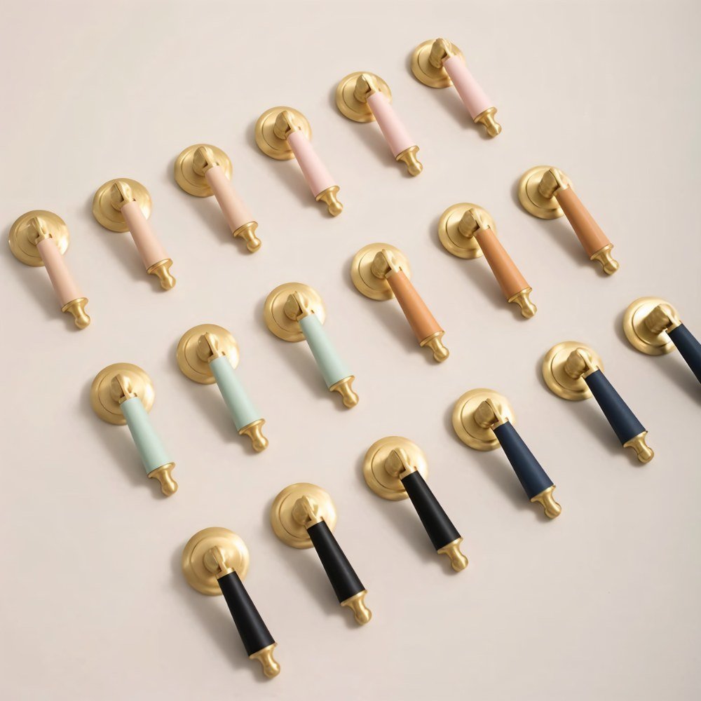 Solid brass and cowhide knob offers a comfortable grip and unique elegance — perfect for enhancing any room with a touch of individuality.