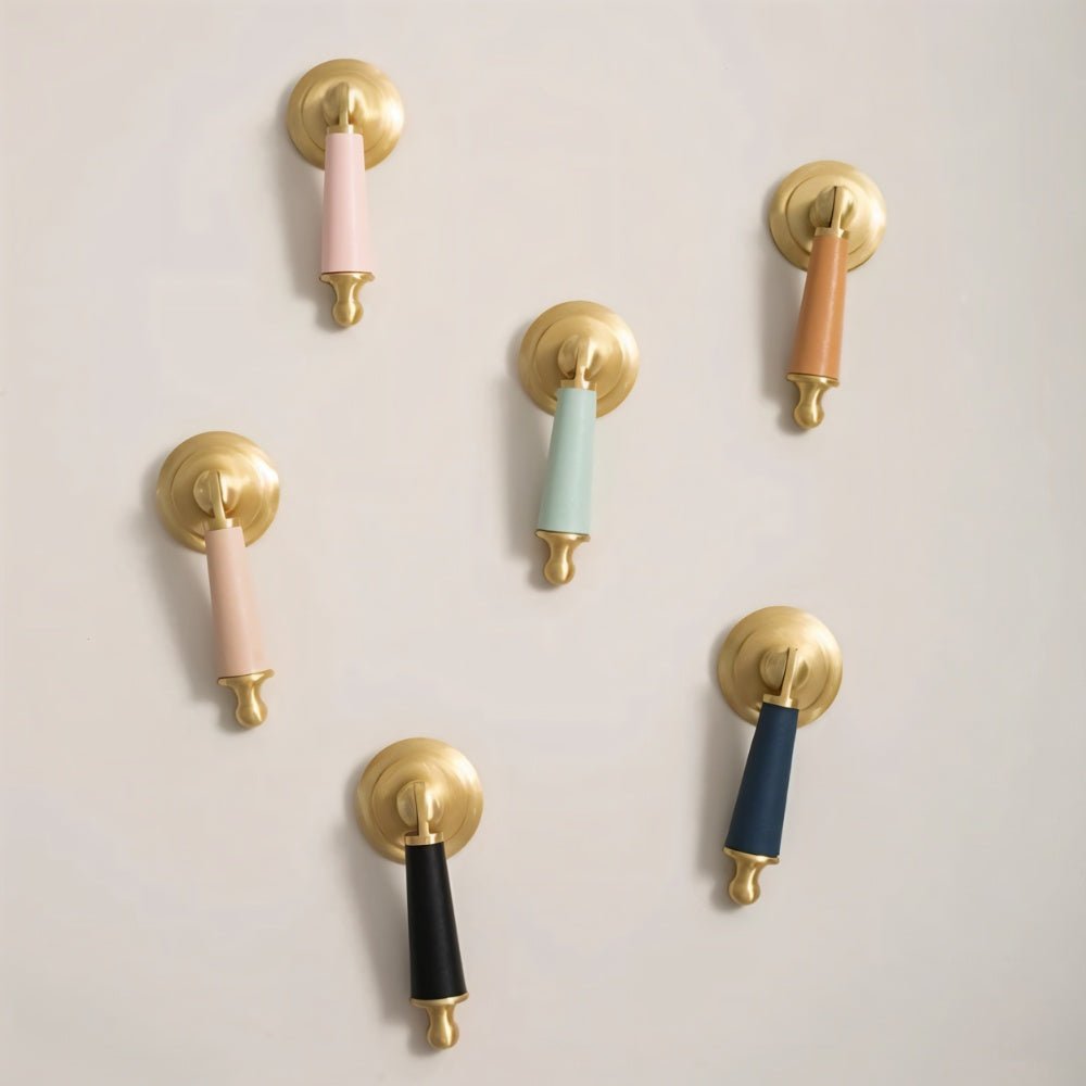 The unique blend of premium cowhide and solid brass creates a sophisticated look, while the ergonomic design ensures a comfortable grip for everyday use. The one-of-a-kind patterns on each handle add a touch of natural elegance, making them a perfect addition to any home.