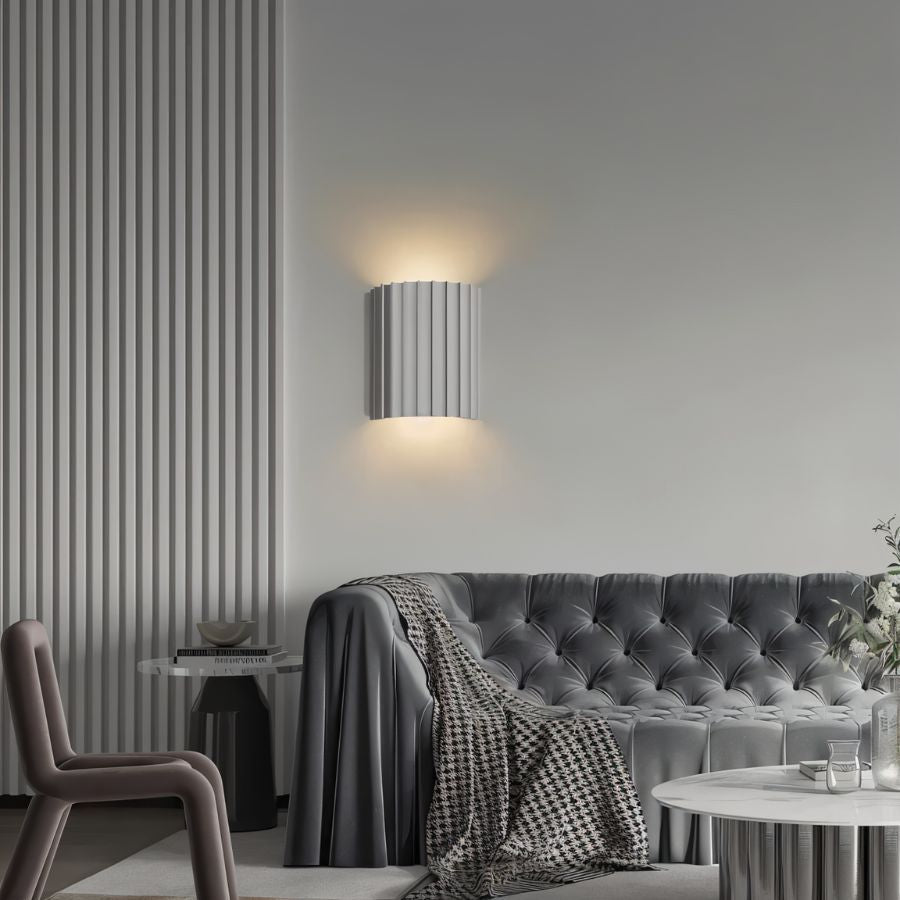 The Ujal Wall Lamp is a modern and minimalist light fixture crafted from durable resin. Featuring a textured, fluted design, this sleek wall lamp adds a contemporary touch to any room. Its warm, ambient glow is perfect for creating a cozy atmosphere in bedrooms, living rooms, hallways, or entryways. The Ujal's unique form, paired with its functional and stylish design, makes it an ideal choice for both residential and commercial spaces looking for elegant lighting solutions.