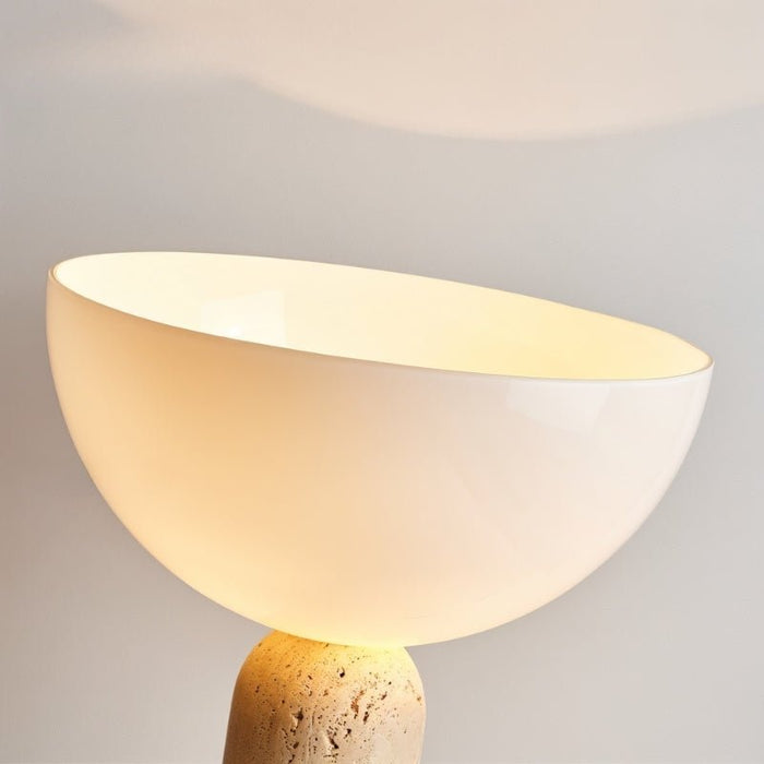 NY2026Travertine base and glass shade offer a soft, ambient glow — perfect for desks, nightstands, and enhancing modern interiors.