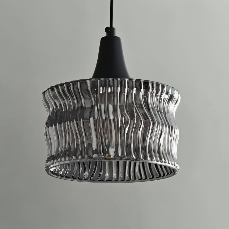 - Sculpted glass shade creates mesmerizing light patterns with a rippled, dynamic texture.