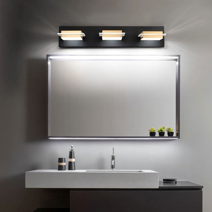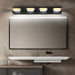 The Volvix Wall Lamp is a sleek, modern light fixture crafted from iron and acrylic. Its layered geometric design casts balanced illumination, ideal for bathroom vanity mirrors. Available in 3, 4, and 5-head configurations, it provides ample brightness while maintaining a minimalist aesthetic. The black base contrasts with frosted acrylic diffusers, ensuring soft yet efficient lighting. Designed for bathroom installations, it enhances visibility without glare.