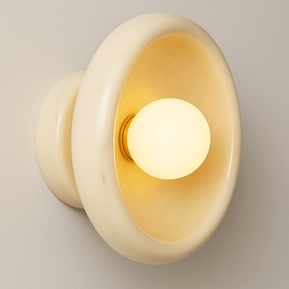 Solid marble and glass construction provides a refined, durable lighting solution, directing soft, ambient illumination — perfect for enhancing living rooms, hallways, or bedrooms.