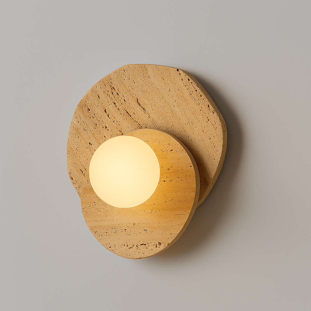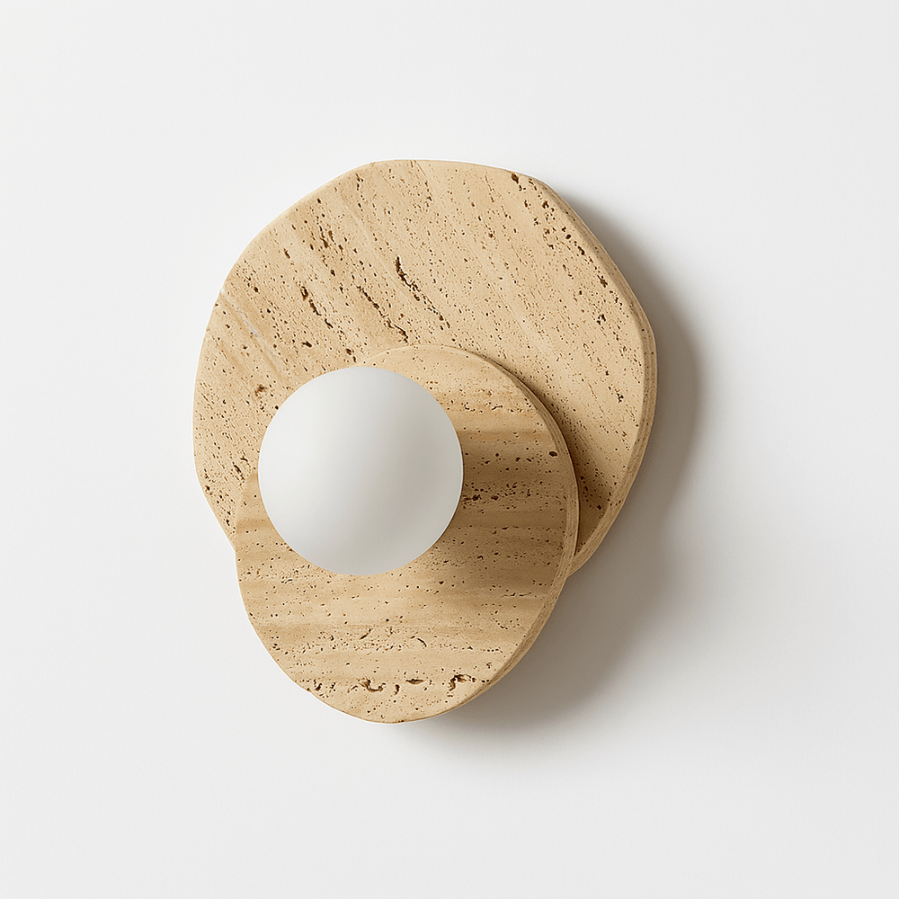 The Vyntor Wall Lamp is crafted from high-quality marble and travertine, available in three unique material-color textures.