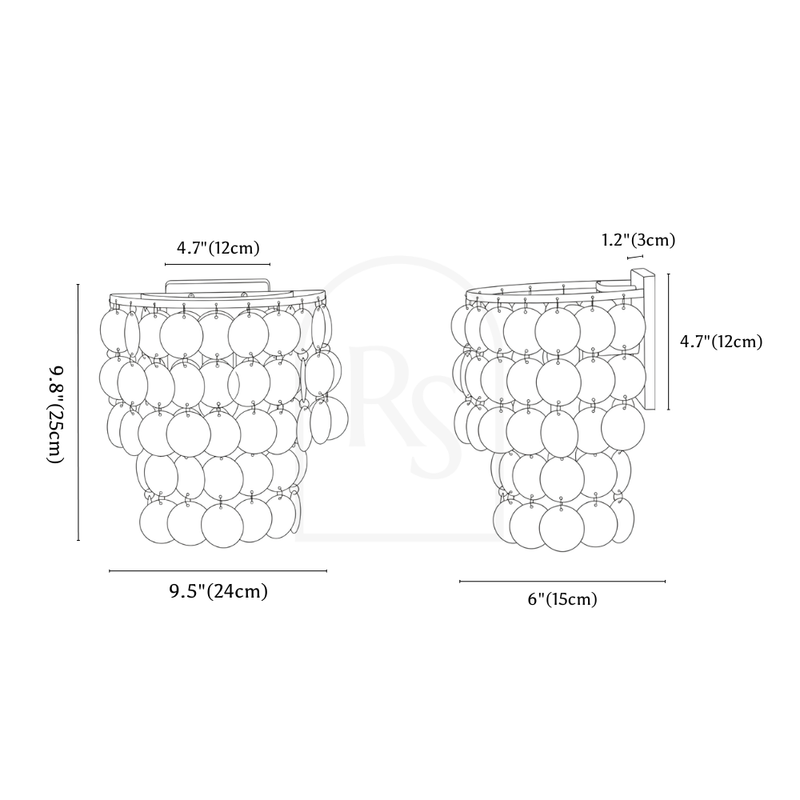 Product Dimensions: L9.4"(24cm) x H9.8"(25cm) Wattage (Lumens): 5W (500lm) Material: Metal, Shell Finish: Gold, Silver Light Source: LED Light Bulb (replaceable) Bulb Included: Yes Number of Bulbs: 1 Bulb Base: E27 Dimmable: Upon Request Voltage: 90-260VAC Installation Type: Wall Mount Canopy/Backplate Dimensions: L4.7"(12cm) x H4.7"(12cm) Certifications: UL, CCC, CE, CQC, EMC, FCC, GS, LVD, PSE, ROHS, SAA, and VDE