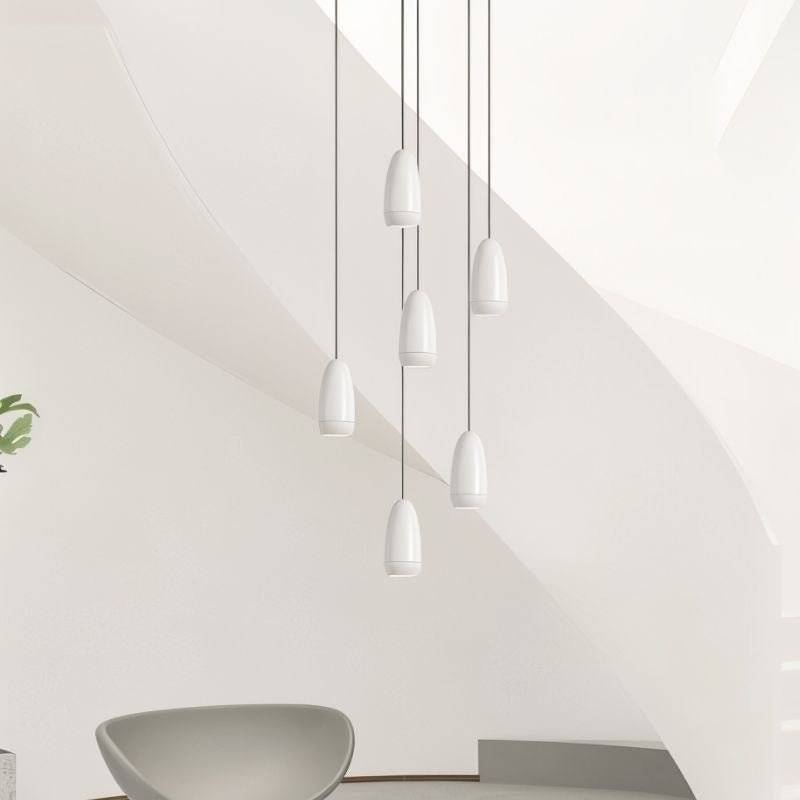 The Ailis Pendant Light is a modern aluminum light fixture featuring capsule-shaped pendants suspended at varying heights for a cascading effect. Its sleek design suits stairwells, foyers, and dining areas, adding depth and soft illumination. Ideal for high ceilings, it enhances contemporary, Scandinavian, and industrial spaces with clean lines and a neutral finish. This pendant light fixture provides focused lighting while elevating spatial aesthetics.