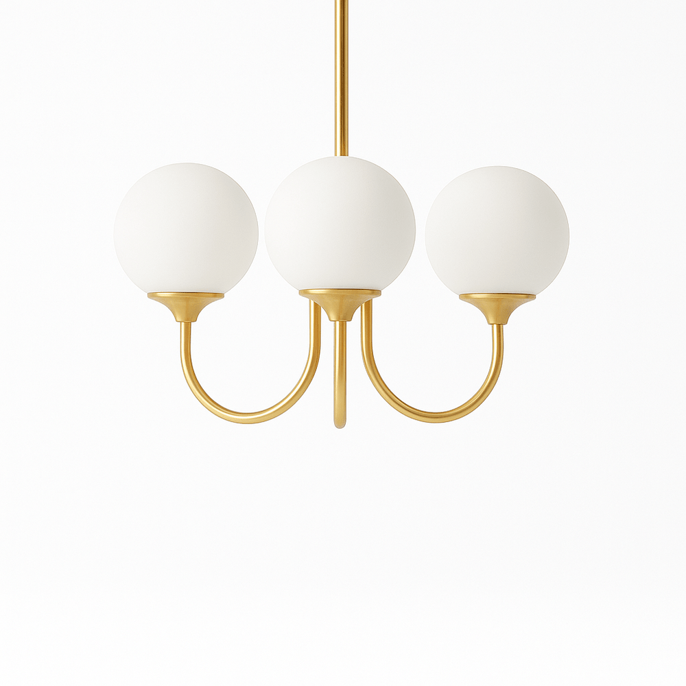 The Amelia Chandelier is an exquisite lighting fixture that embodies classic old-world charm with a modern twist, making it a versatile addition to any interior space. Constructed from high-quality polished metal and glass, it offers not only durability with its temperature and fade-resistant design but also a luxurious aesthetic with its gold-finished frame available in peachy pink or white glass shades. This chandelier is designed to provide a warm, ambient light, enhancing the atmosphere of bedrooms, dining areas, and offices alike. It features energy-efficient LEDs with a remarkable 50,000 hours of operating life and supports a voltage range of 90-230V for consistent, bright lighting. The Amelia Chandelier is easy to install, with all necessary mounting hardware included, and offers flexibility in installation as it can be hung from the ceiling or mounted on the wall. Available in two sizes, it seamlessly combines glamour with simplicity, making it a statement art piece that complements any room decor.