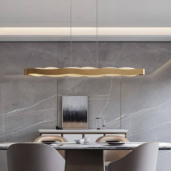 The Anita Chandelier captivates with its wave-inspired design, crafted from stainless steel and acrylic for a sleek, modern aesthetic. Integrated LEDs emit a mesmerizing glow, enhancing its sophisticated appeal. Perfect for dining rooms, living areas, or entryways, this chandelier effortlessly elevates any interior with its timeless elegance.