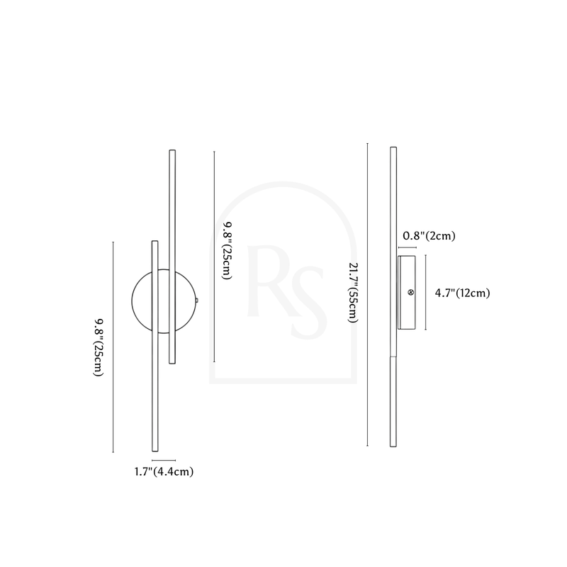 Product Dimensions: D4.7"(12cm) x H21.7"(55cm) Material: Metal, Acrylic Finish: Black, White Light Source: Integrated LED Dimmable: Upon Request Voltage: 90-260VAC Installation Type: Wall Mount Certifications: UL, CCC, CE, CQC, EMC, FCC, GS, LVD, PSE, ROHS, SAA, VDE