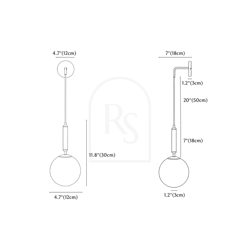 Product Dimensions: D4.7"(12cm) x H11.8"(30cm) Wattage (Lumens): 10W (1000lm) Weight: 1.3lbs (600g) Material: Glass, Iron Finish: Gold Light Source: LED Light Bulb (replaceable) Bulb Included: Yes Number of Bulbs: 1 Bulb Base: E14 Dimmable: Upon Request Voltage: 90-260VAC Installation Type: Wall Mount Chain/Cord Length: Up to 3.3ft (1 meter) Adjustable Cord: Yes Canopy/Backplate Dimensions: D4.7"(12cm) Certifications: UL, CCC, CE, CQC, EMC, FCC, GS, LVD, PSE, ROHS, SAA, and VDE
