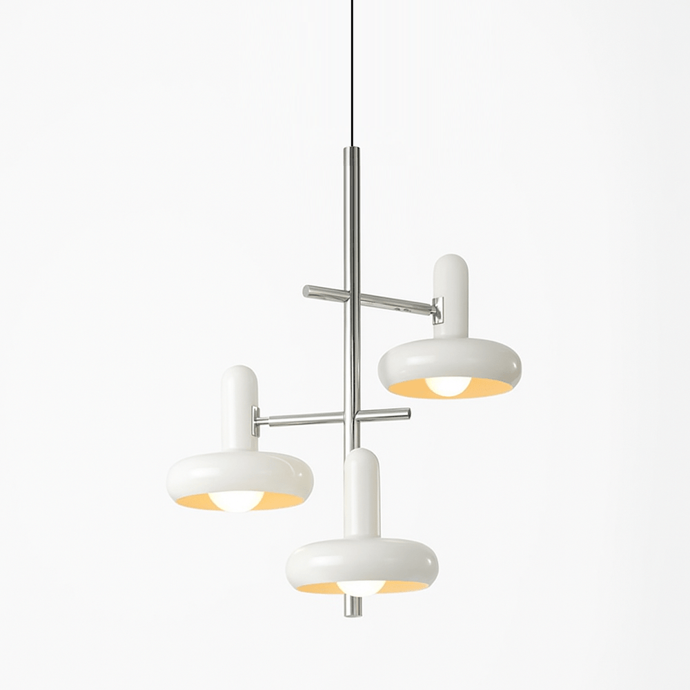 The Beverly Pendant Light is a modern light fixture crafted from durable aluminum and iron, featuring four adjustable disc-shaped shades for directional lighting. Suspended from a sleek rectangular ceiling mount, its sculptural, linear design enhances dining areas, kitchens, and open-concept spaces. Ideal for contemporary, mid-century, and industrial interiors, it provides focused illumination over tables and kitchen islands.