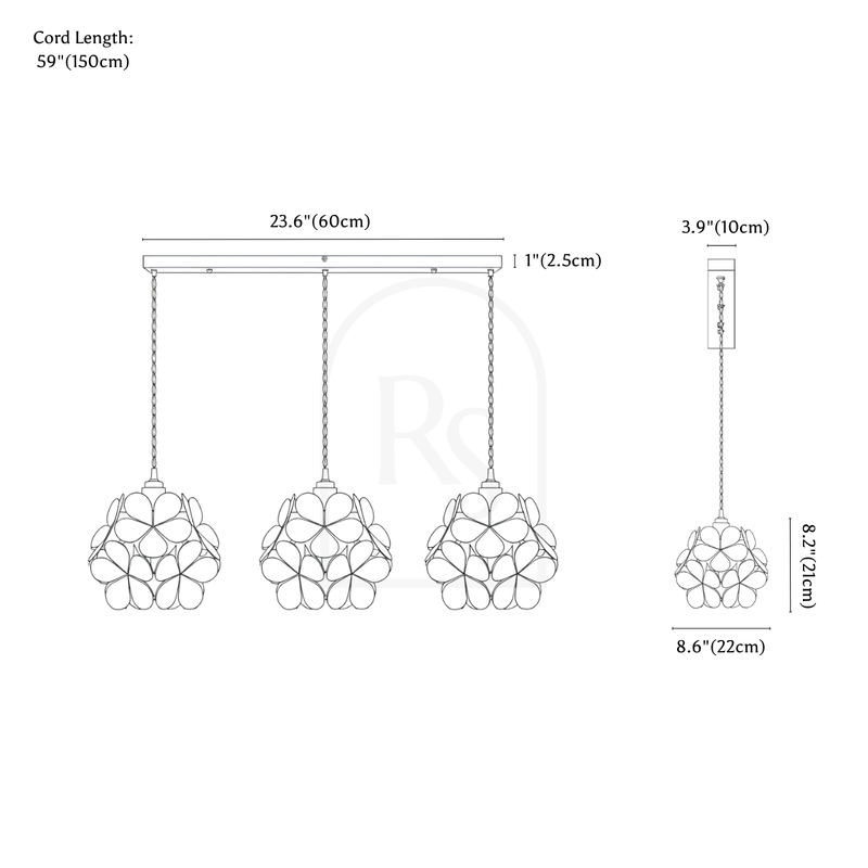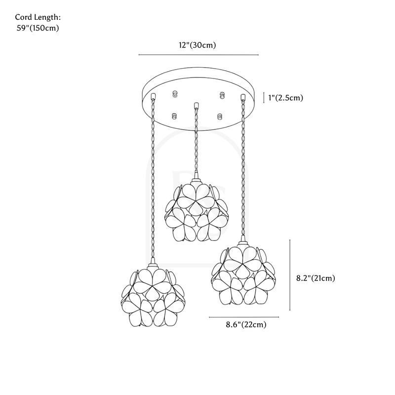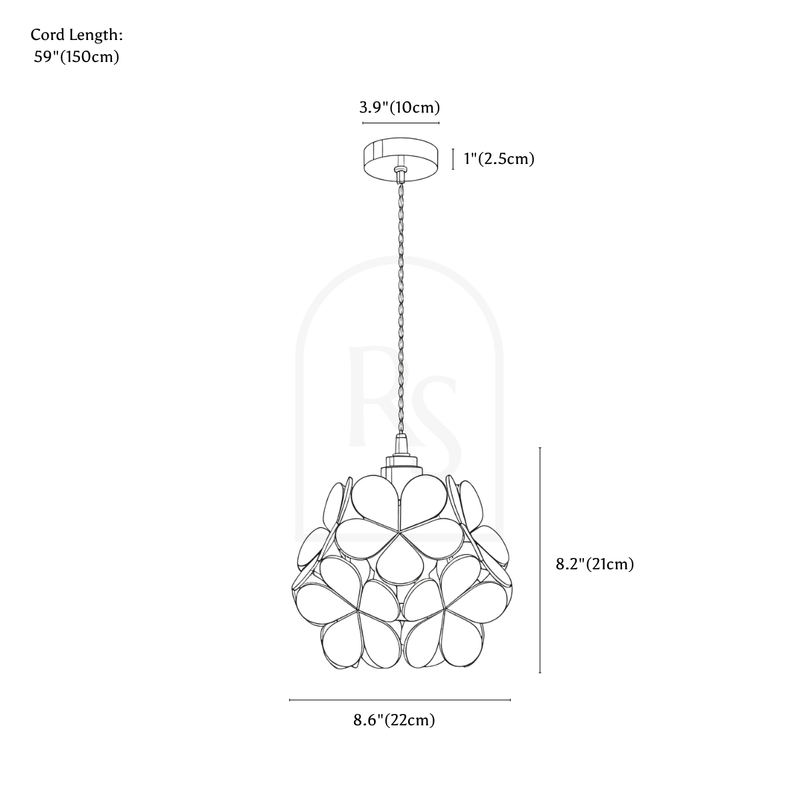 The Camellia Pendant Light is meticulously crafted from premium-grade glass and metal materials, ensuring both durability and a high-quality finish that exudes timeless elegance.