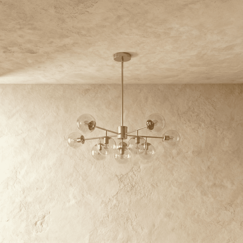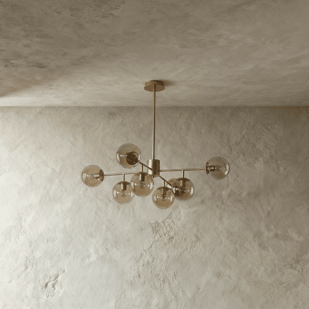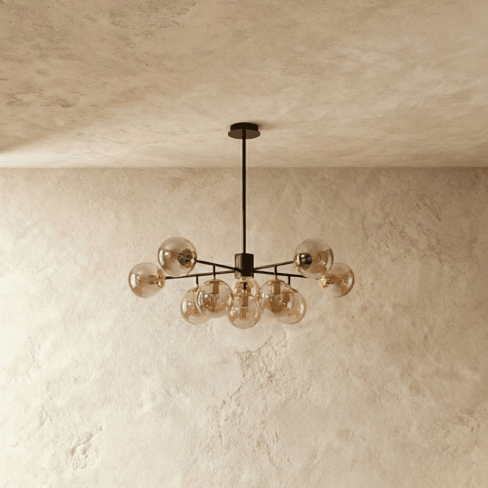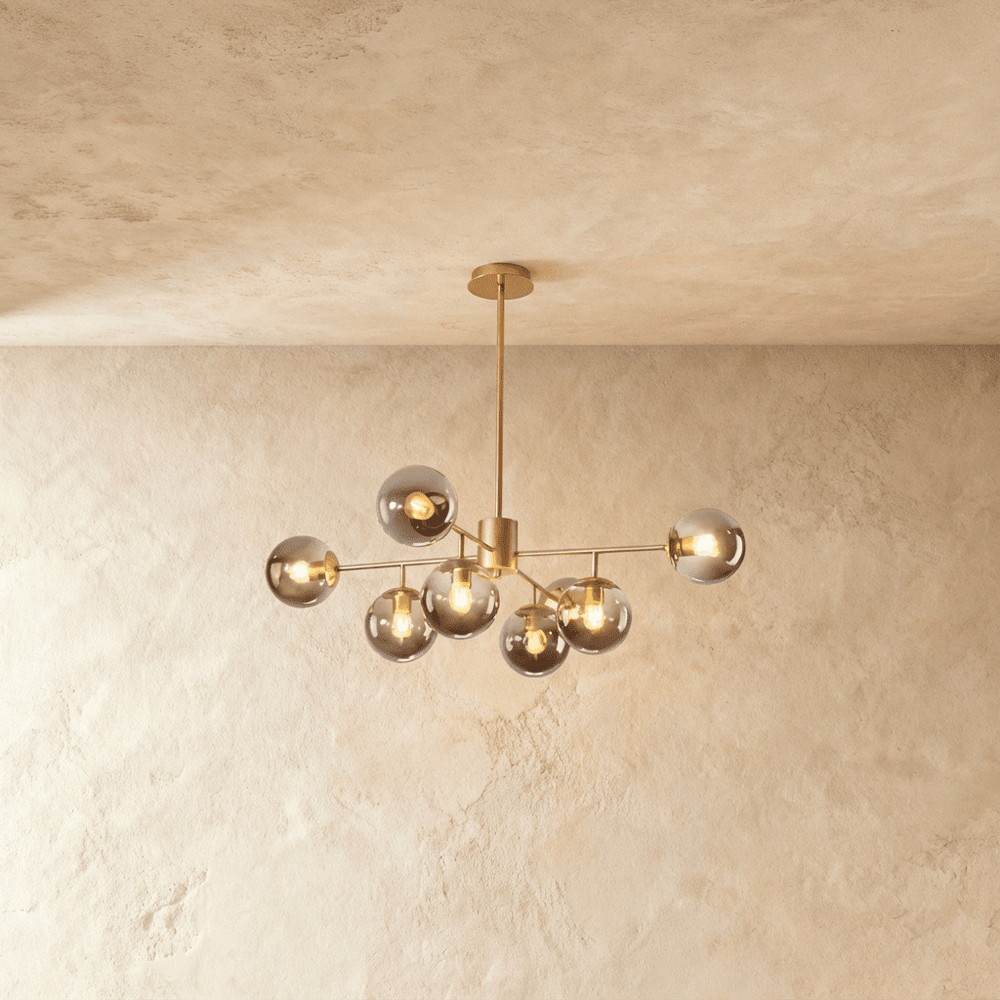 The Camilla Chandelier is meticulously crafted from superior quality polished iron and blown glass, combining durability with a touch of modern opulence. This exquisite blend of materials not only ensures a robust structure but also adds a luxurious aesthetic to any space, making it a standout centerpiece in your home.